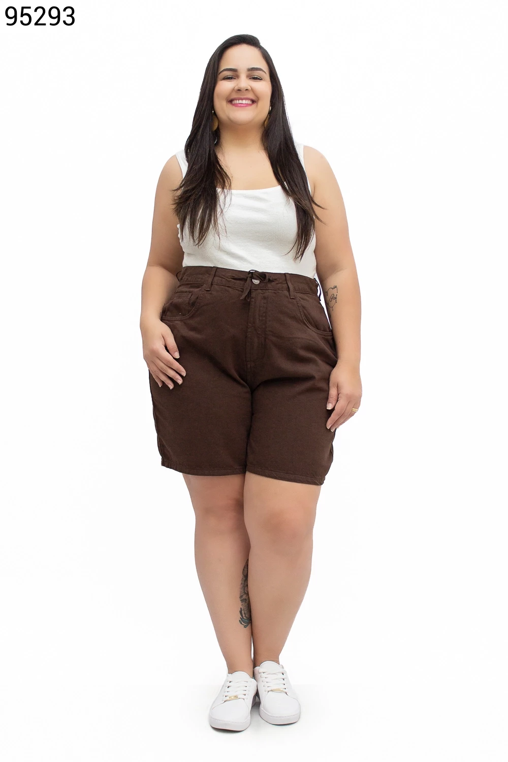 Ref.17089Bermuda Feminina Plus Size Meia Coxa Com Cordão No Cós