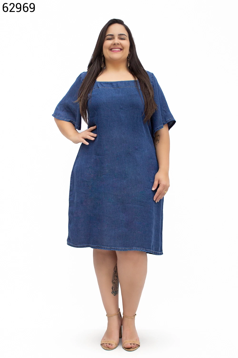 Ref.62969Vestido Feminino Plus Size Curto Com Amarração