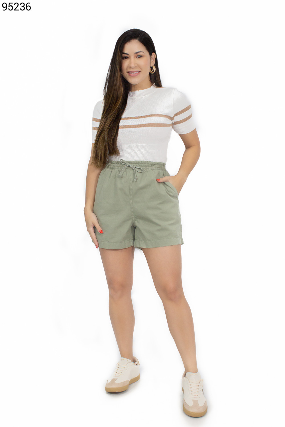 Ref.95179Shorts Feminino com Elástico No Cós E Bolso Faca