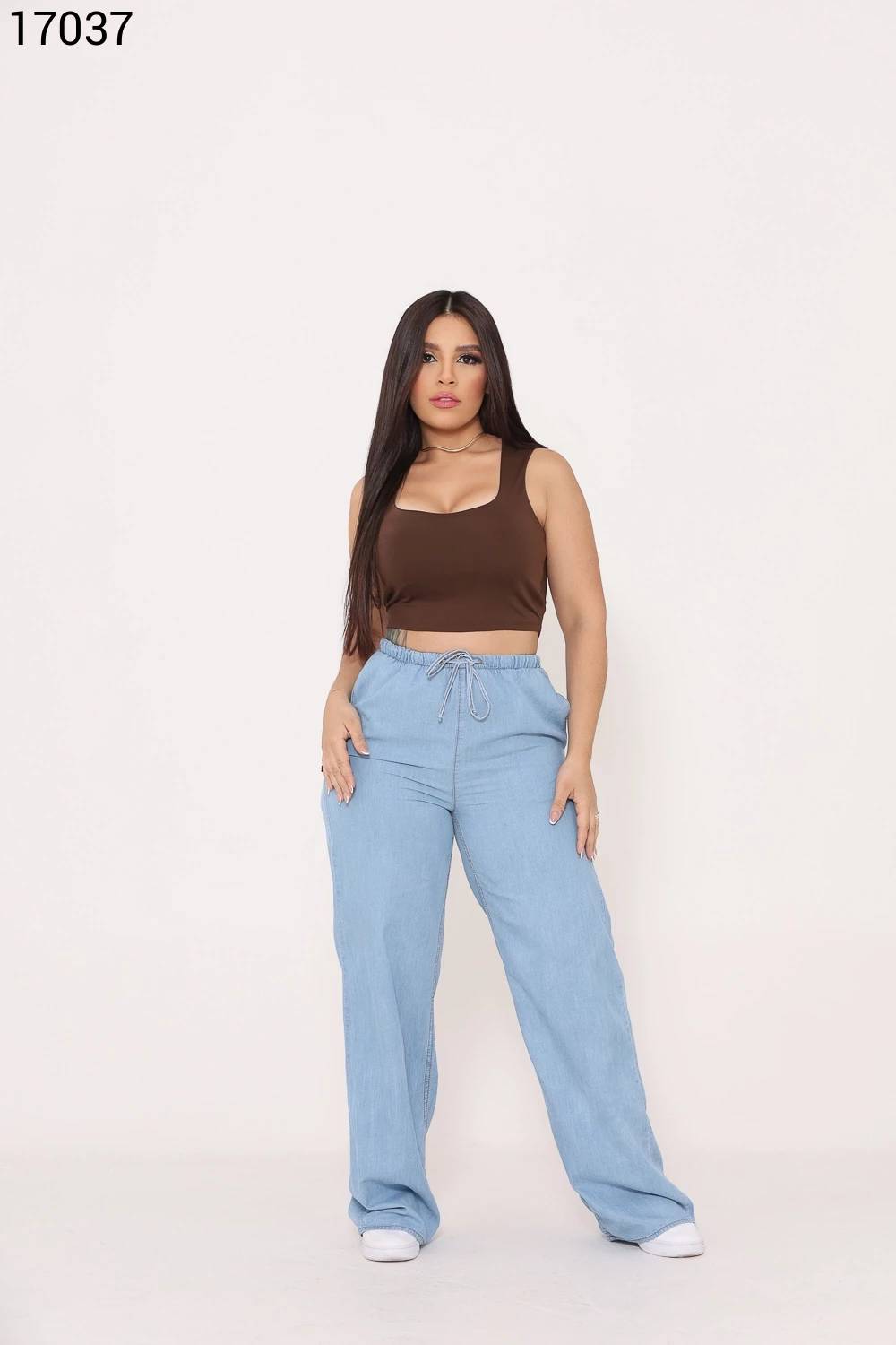 Ref.15654Calça Feminina Wide Leg Slim com Canaleta e Cordão Jeans - 15376