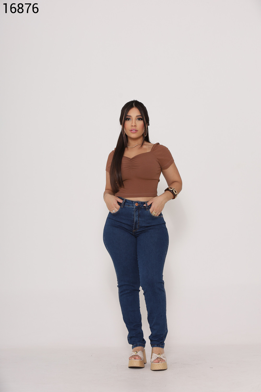Ref.16799Calça Feminina Reta Básica Cinco Bolsos - 16597