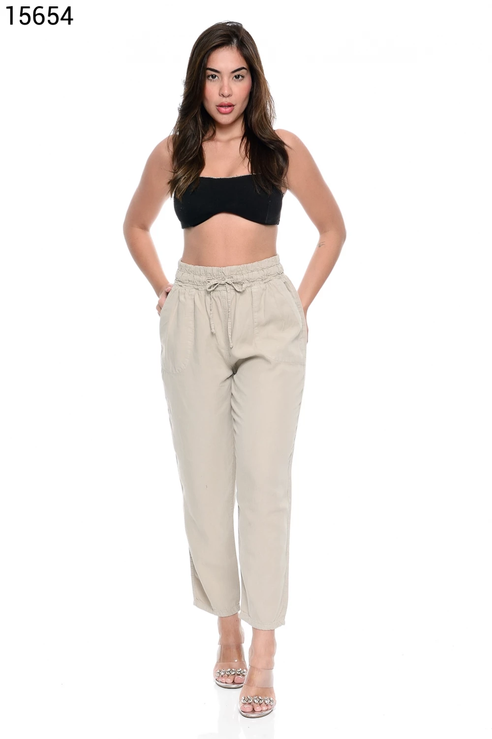 Ref.15480Calça Feminina Jogger com Elástico e Cordão do Mesmo Tecido PT - 15654