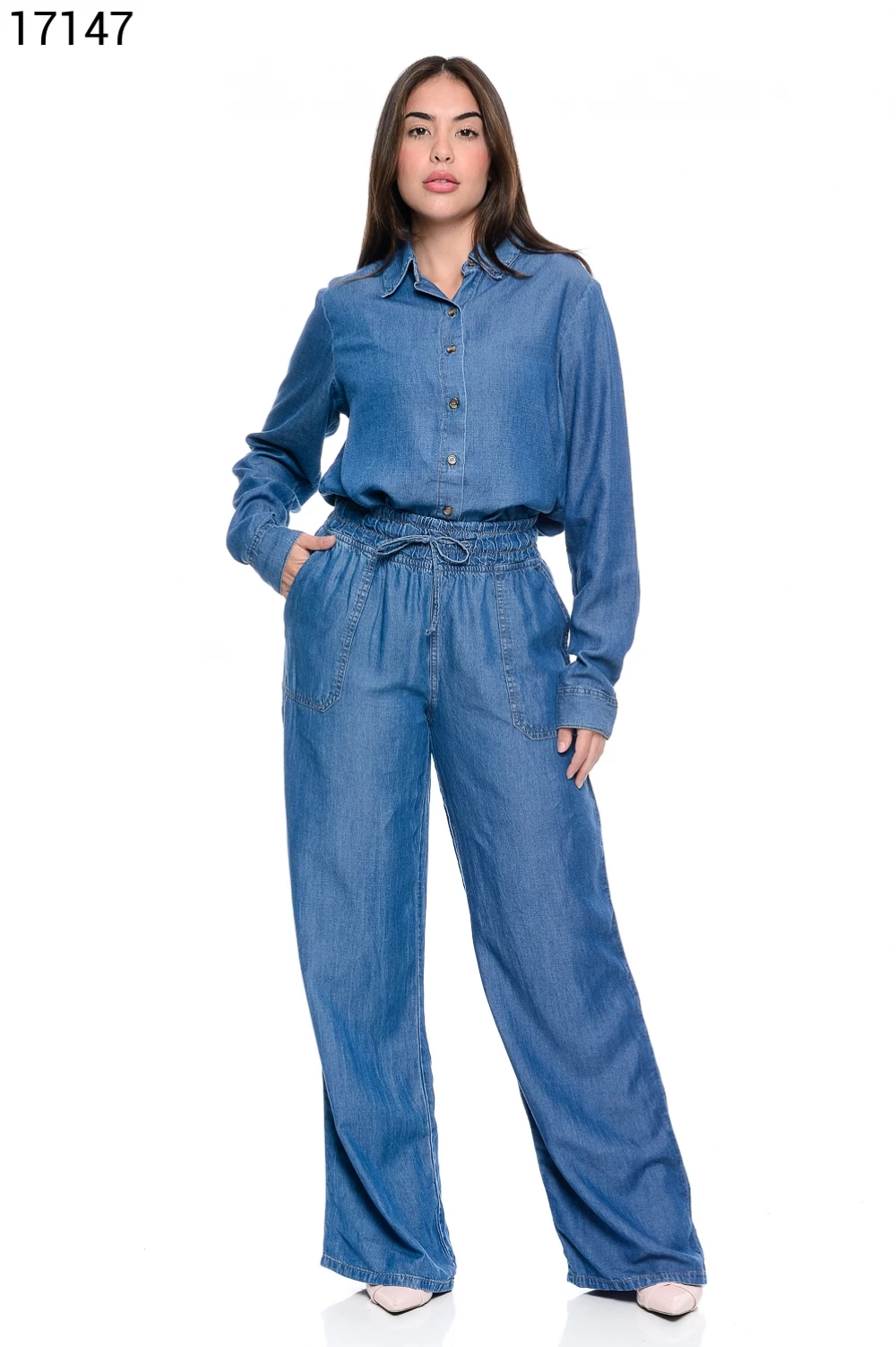 Ref.17147Calça Feminina Wide Leg Slim com Cordão no Cós