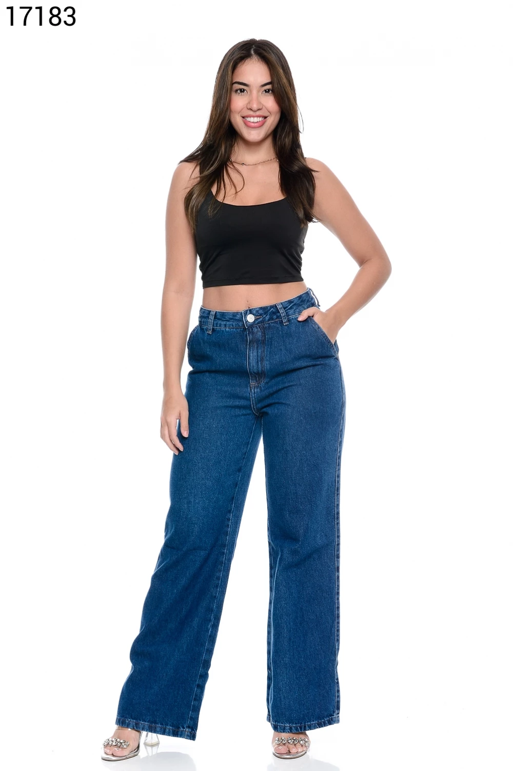 Ref.17078Calça Fem Wide Leg Slim Regular Tradicional