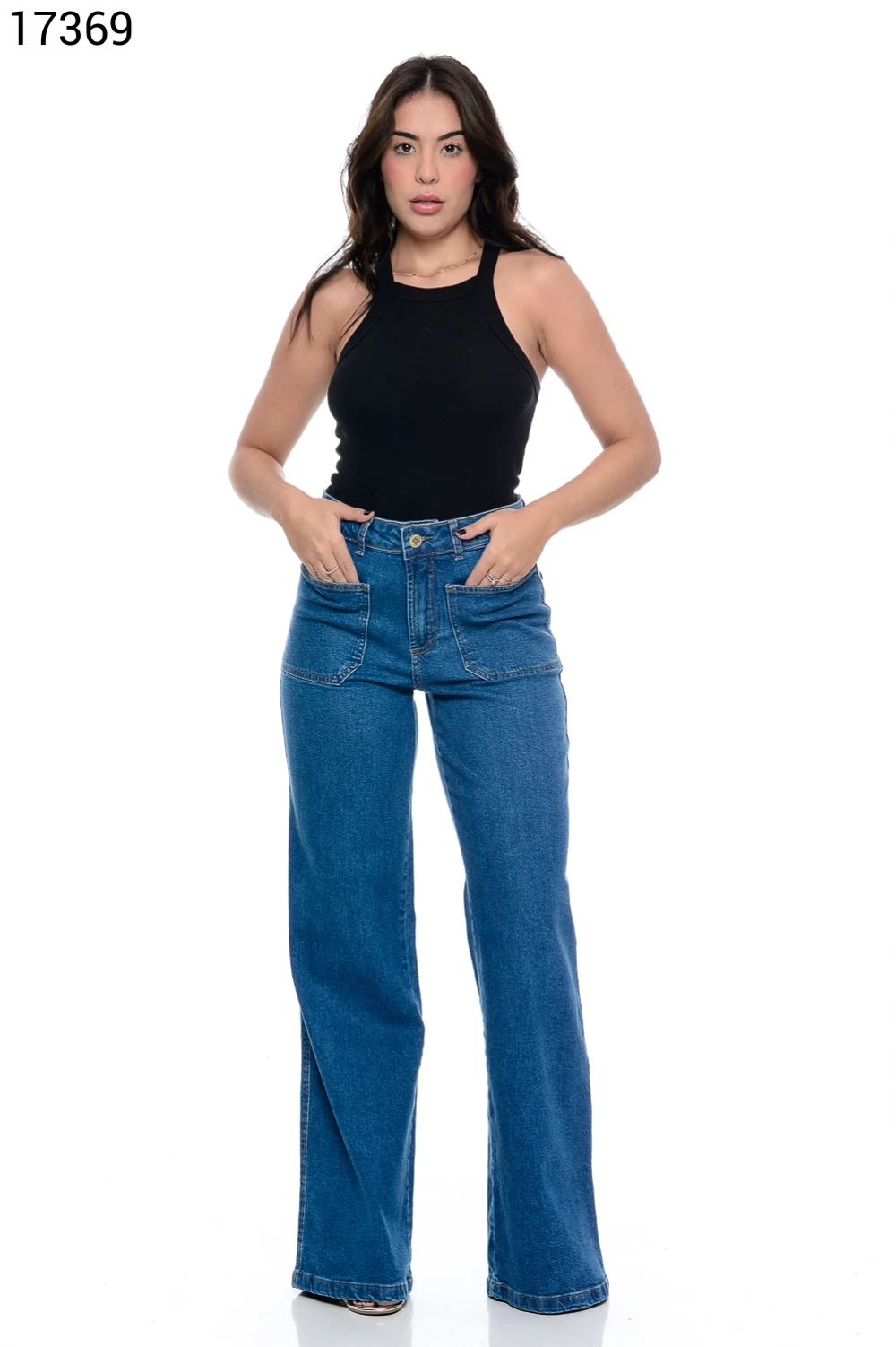 Ref.16045Calça Feminino Wide Leg Regular com Bolso Carpinteiro