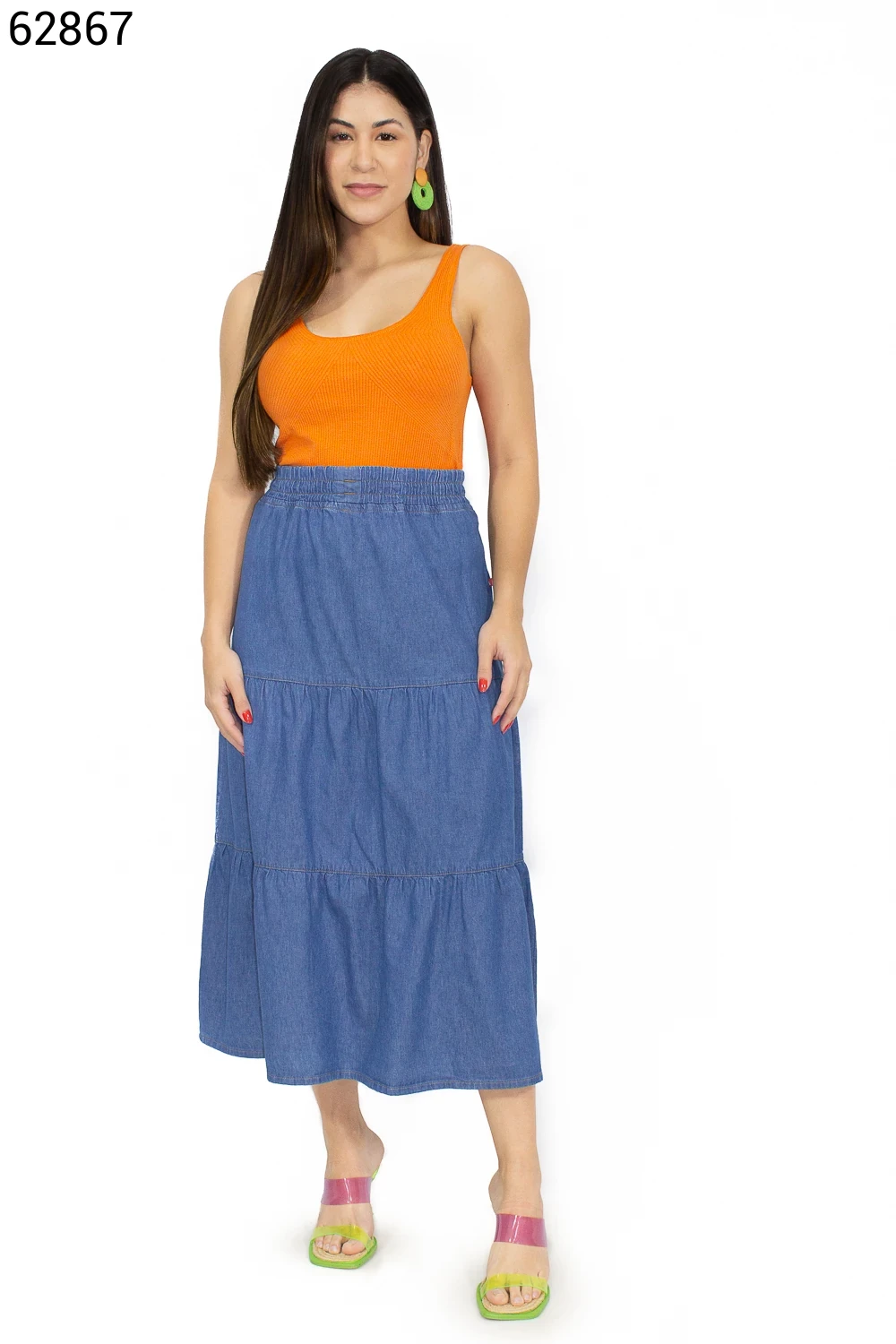 Ref.62798Saia Feminina Midi em Camadas - 61504