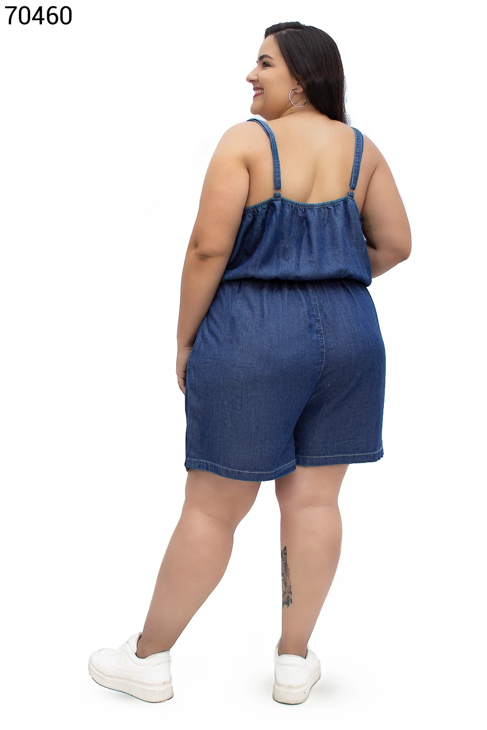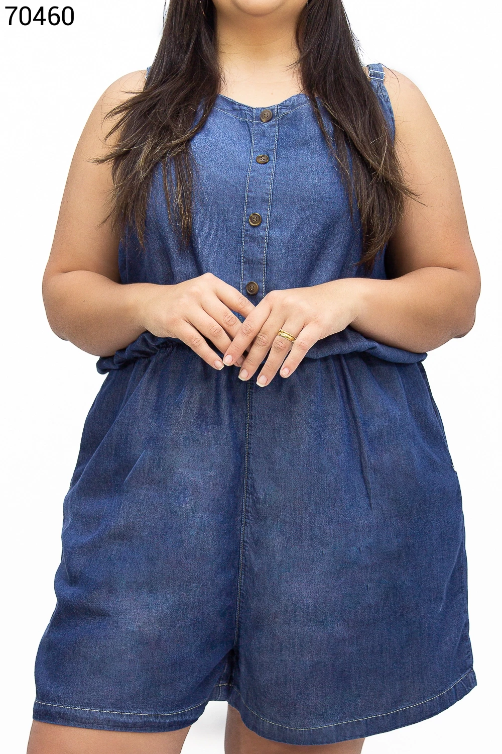 Macaquinho Feminino Plus com Alça e Elástico Jeans - 70460