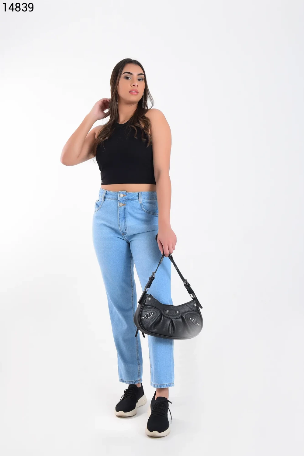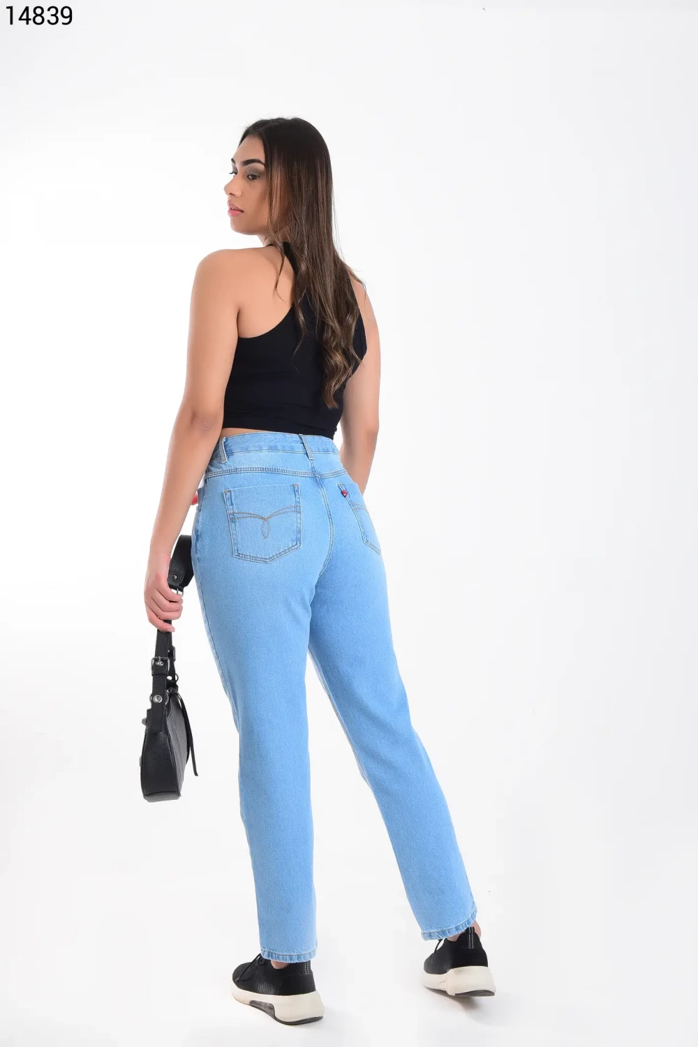 Ref.17134Calça Fem Regular Reta Básica Com Bordado