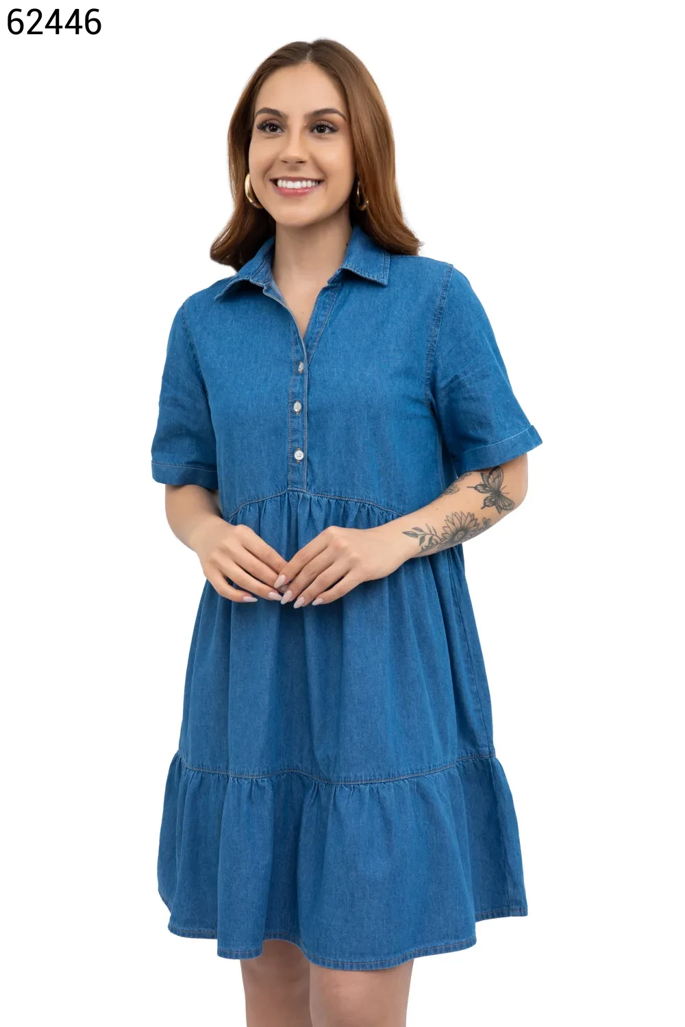 Ref.63252Vestido Feminino Curto com Canaleta e Botões