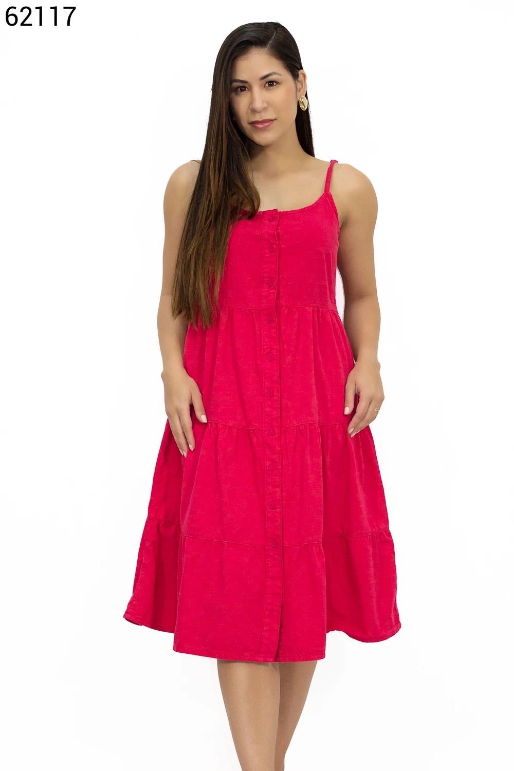 Ref.62862Vestido Feminino Midi com Vista e Botões - 62260