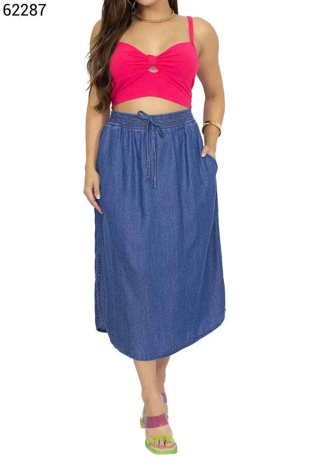 Ref.63096Saia Feminino Regular Midi Com Elástico