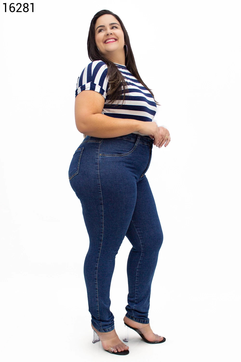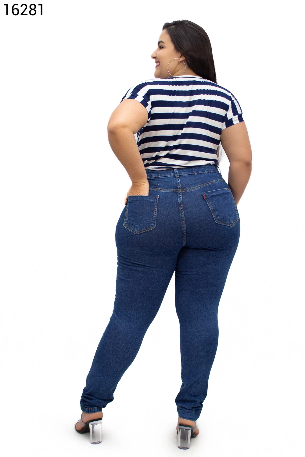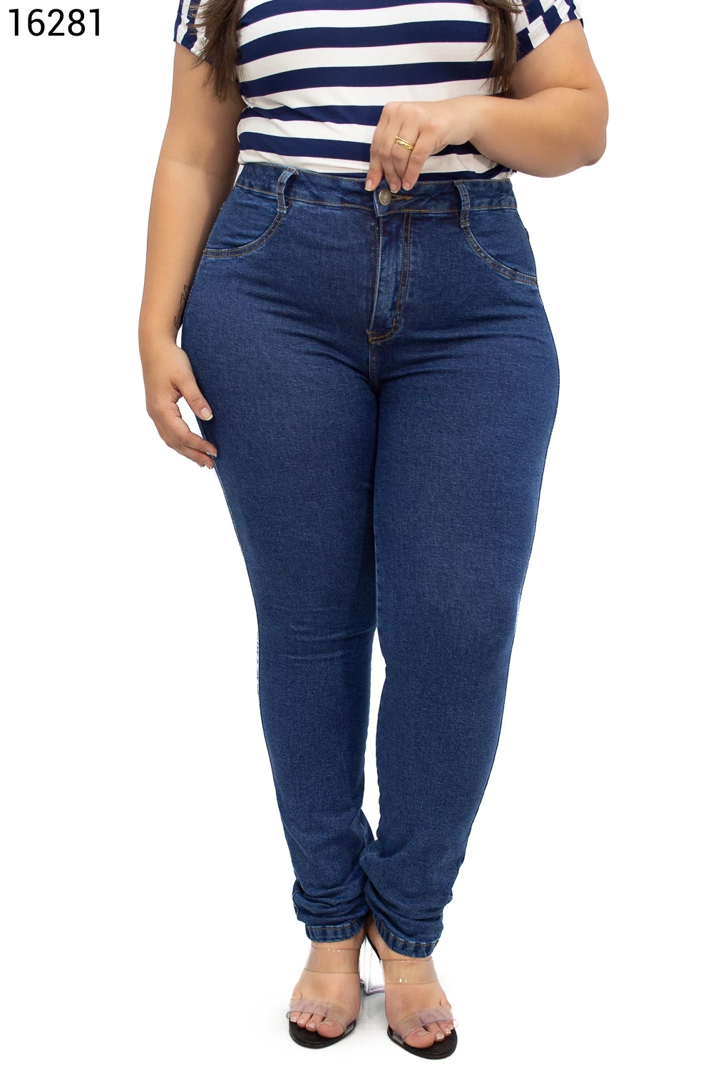 Ref.16531Calça Reta Feminina Plus com Detalhes de Costura - 15926