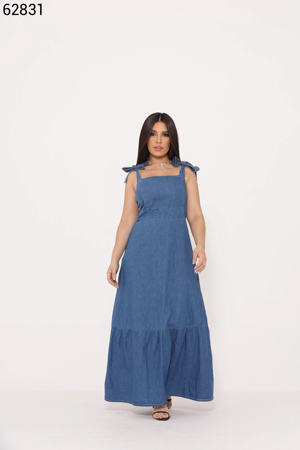 Ref.62877Vestido Longo com Pences E Alças Grossas