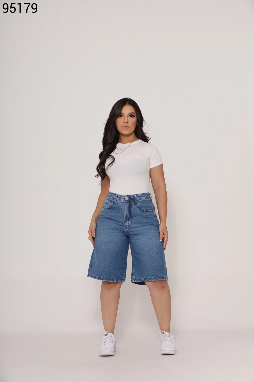 Ref.94575Jorts Feminino Cintura Média Relaxed com Costura Deslocada