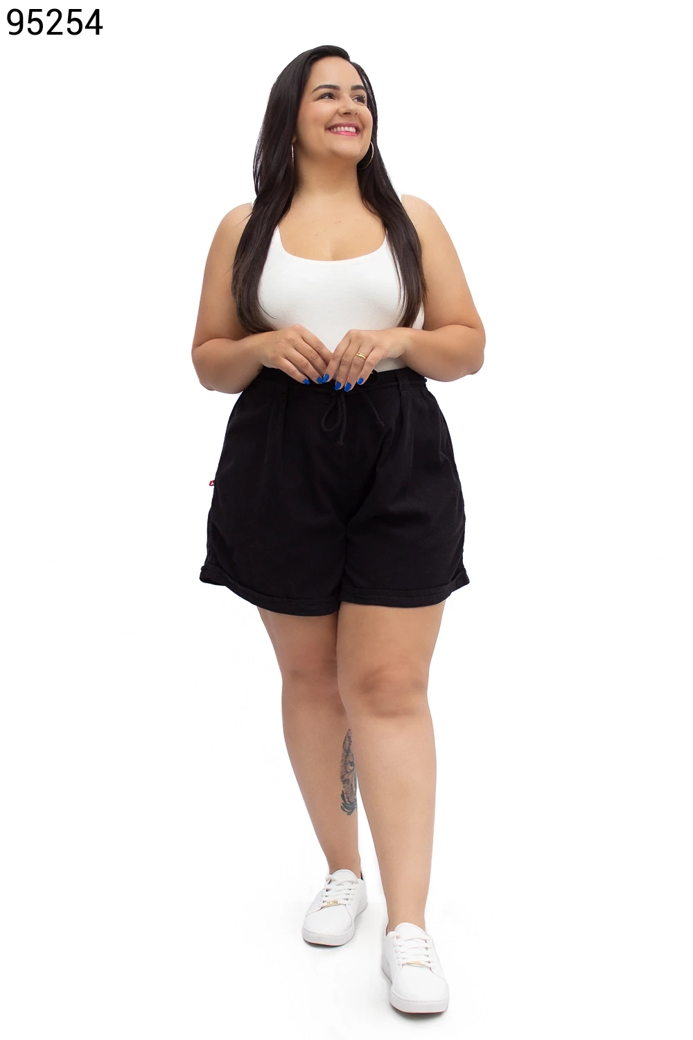 Ref.95124Shorts Feminino Plus Size com Elástico e Cordão no Cós