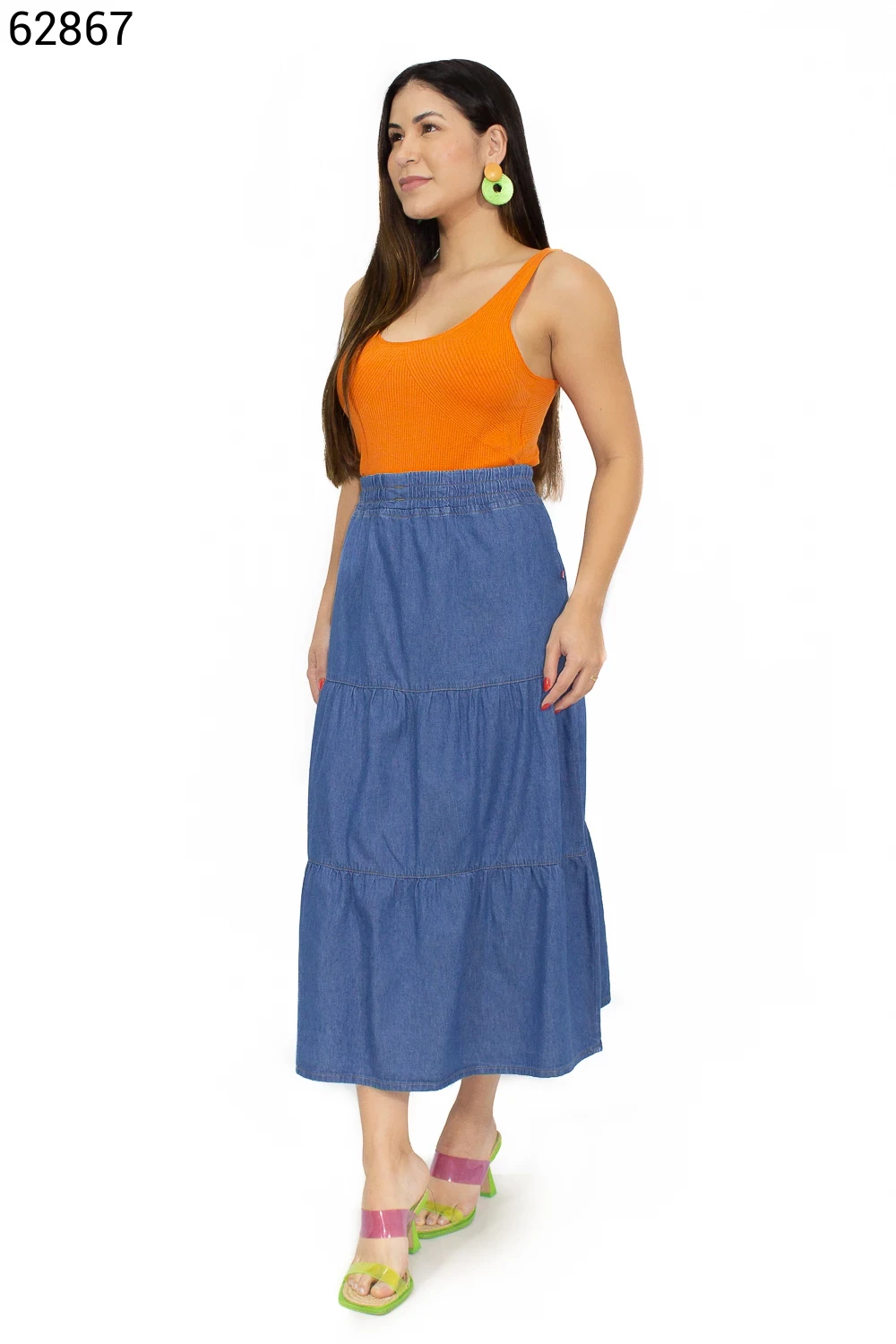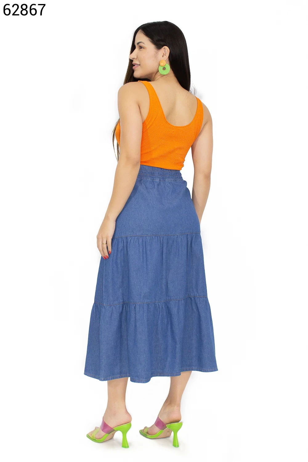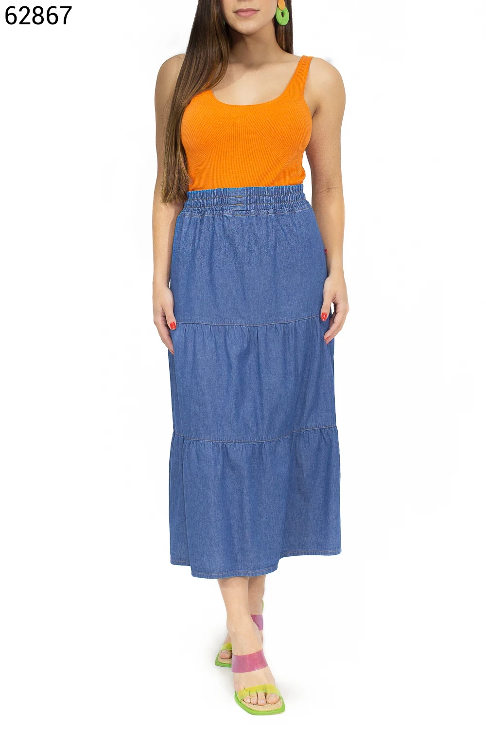 Ref.62596Saia Feminina Midi em Camadas - 61504