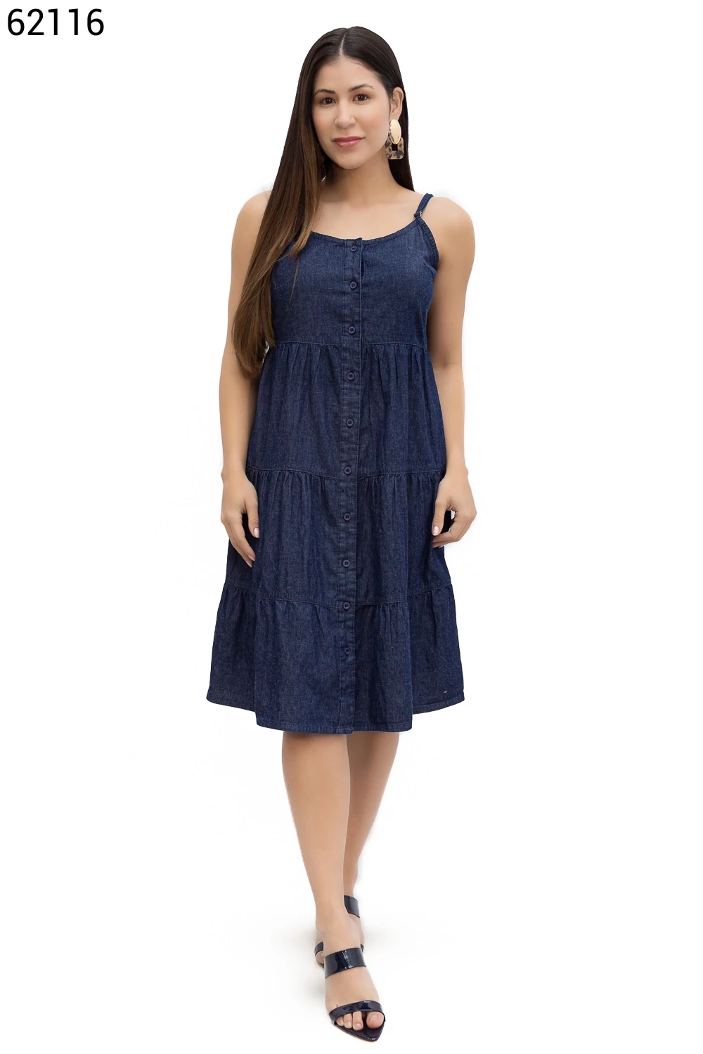 Ref.62116Vestido Feminino Midi com Vista e Botões - 62260