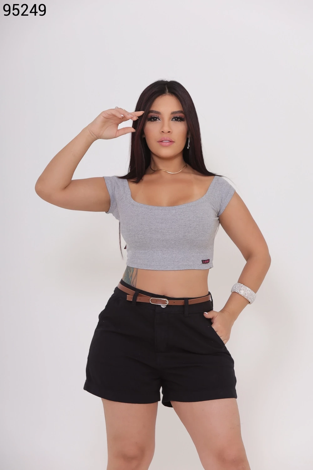 Ref.94995Shorts Feminino com Bolso Faca e Cinto - 94976