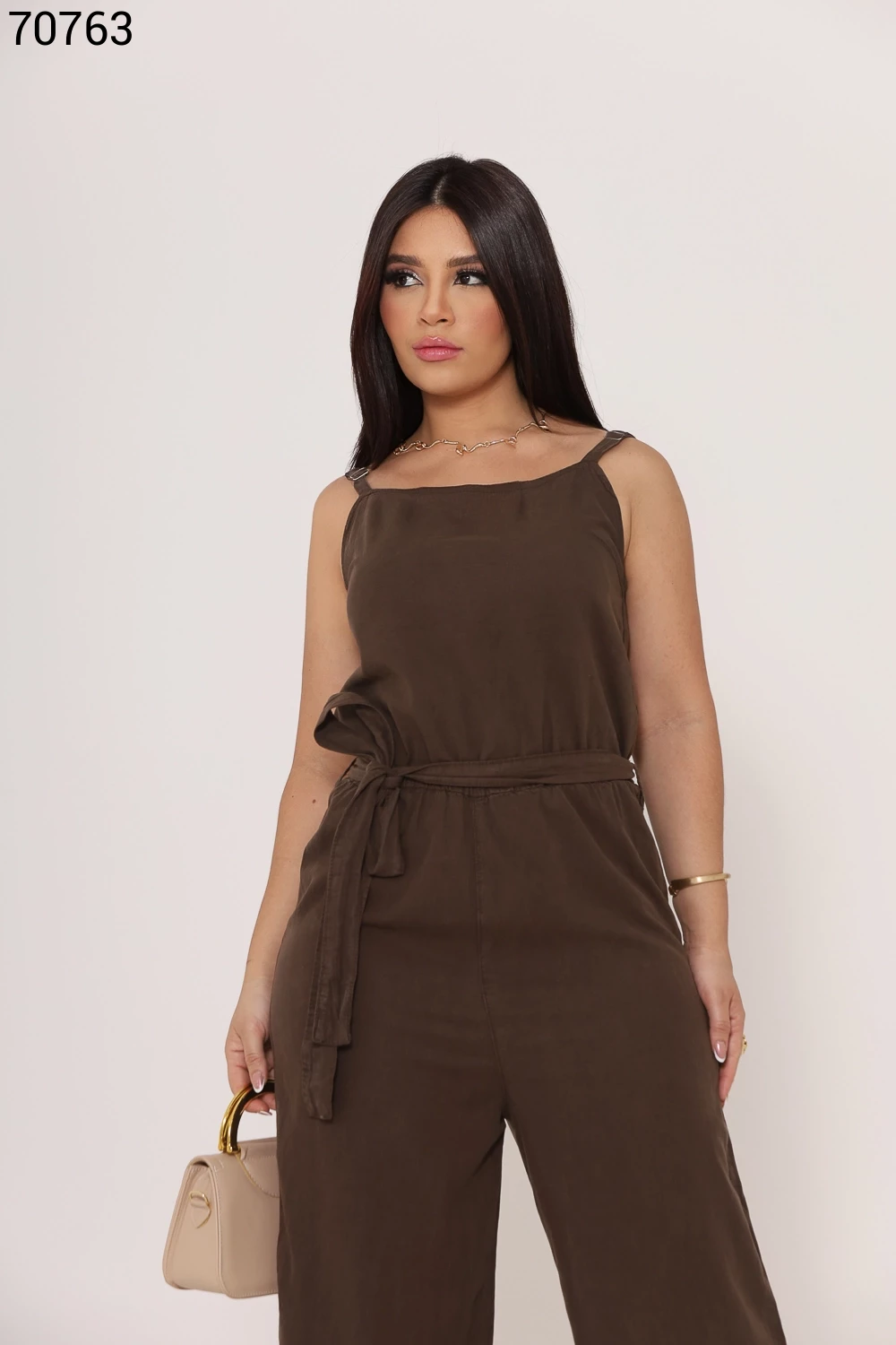 Ref.70760Macacão Feminino Regata com Cinto Do Mesmo Tecido