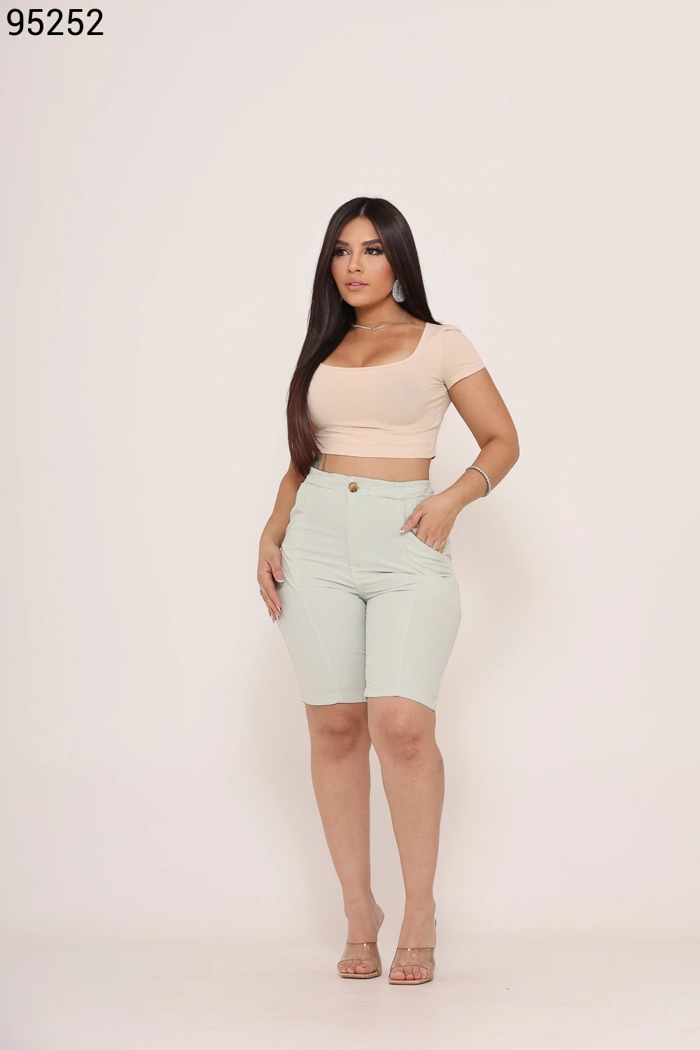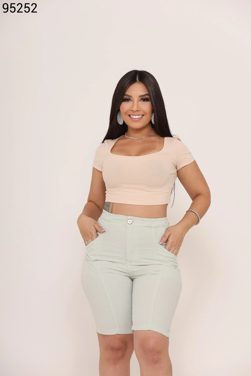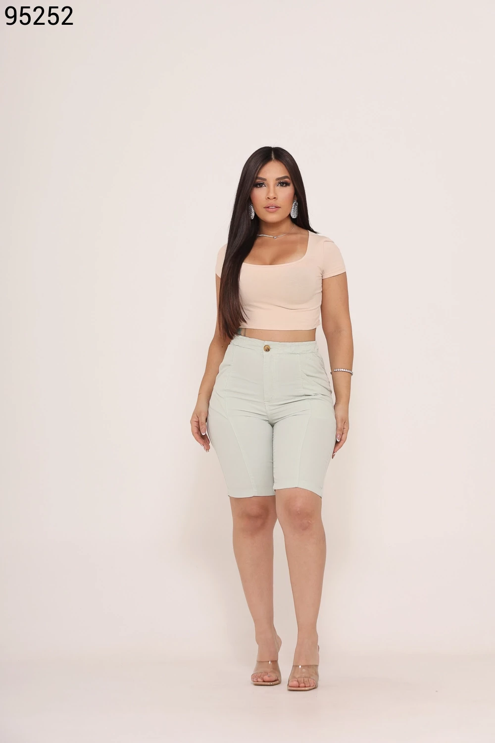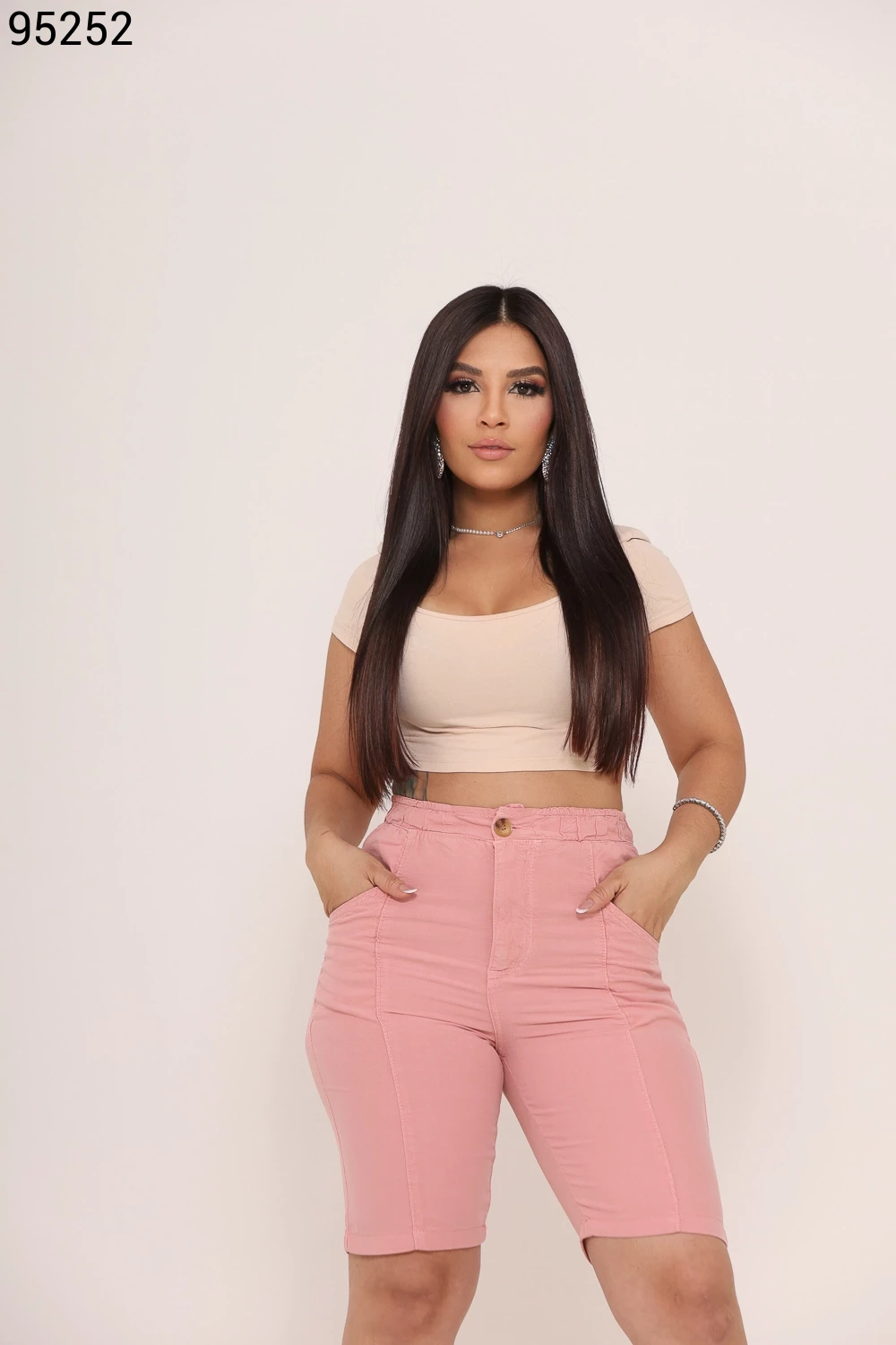 Ref.92631Bermuda Feminina Ciclista Classic Alta com Bordado