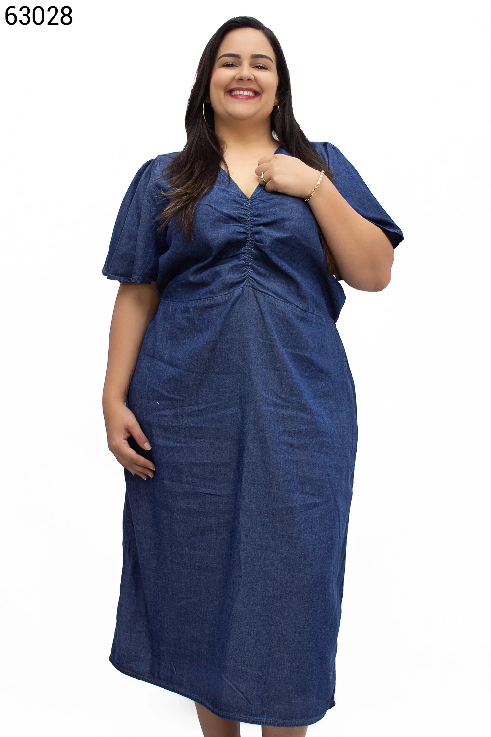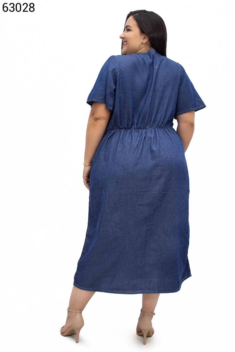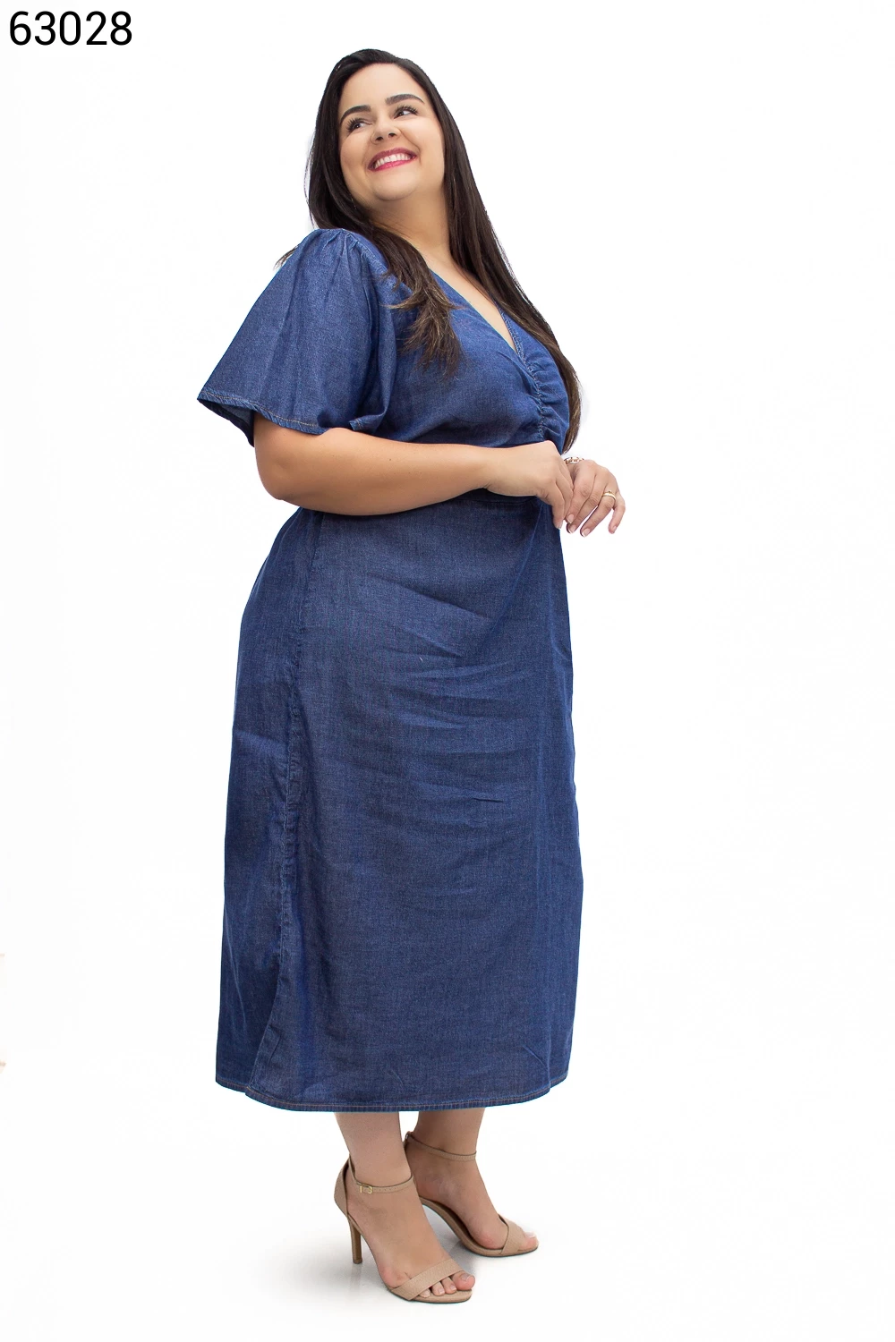 Ref.62793Vestido Feminino Plus Size Midi com Manga Bufante