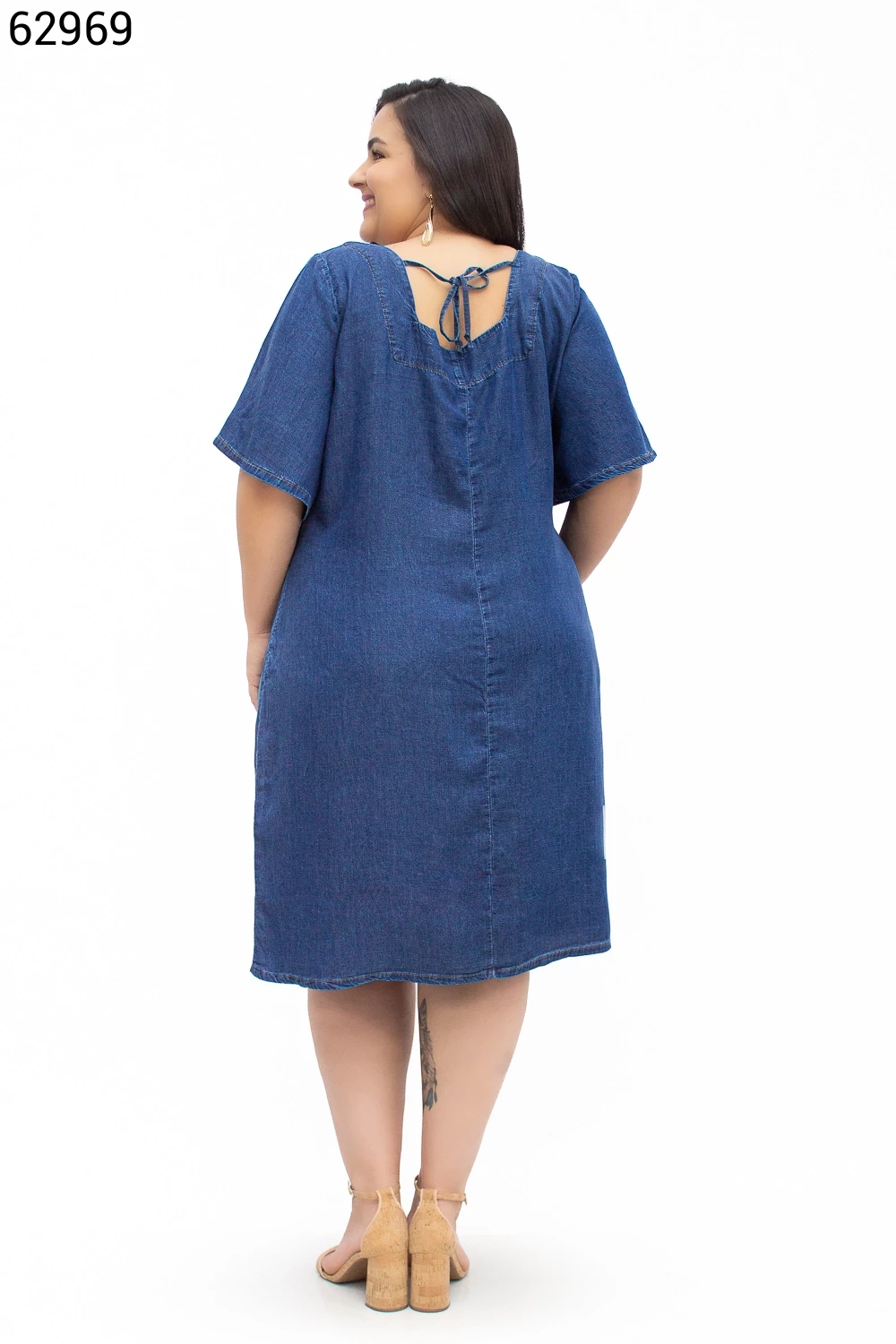 Ref.62857Vestido Plus Size Curto com Botões e Cinto de Amarração