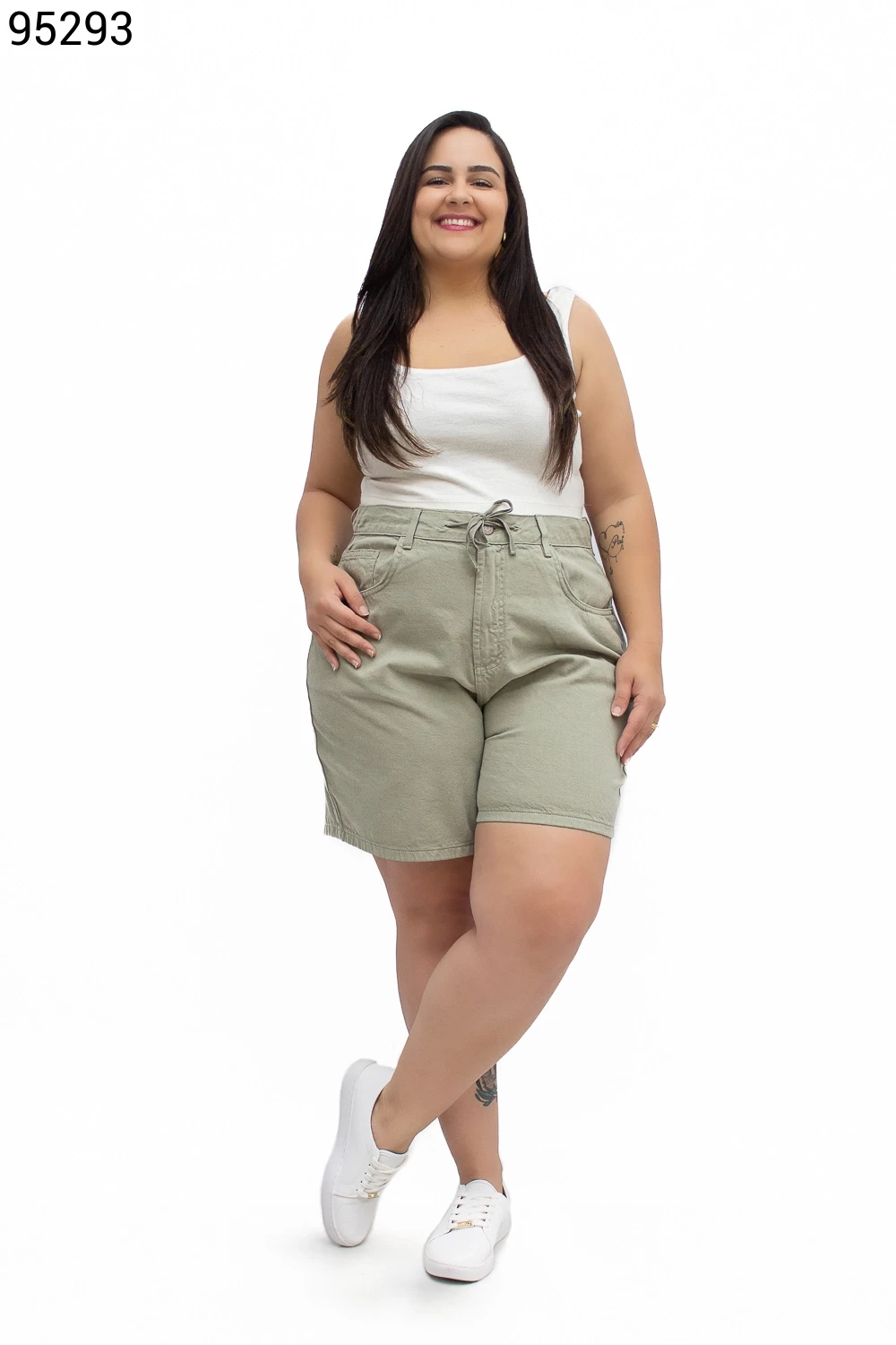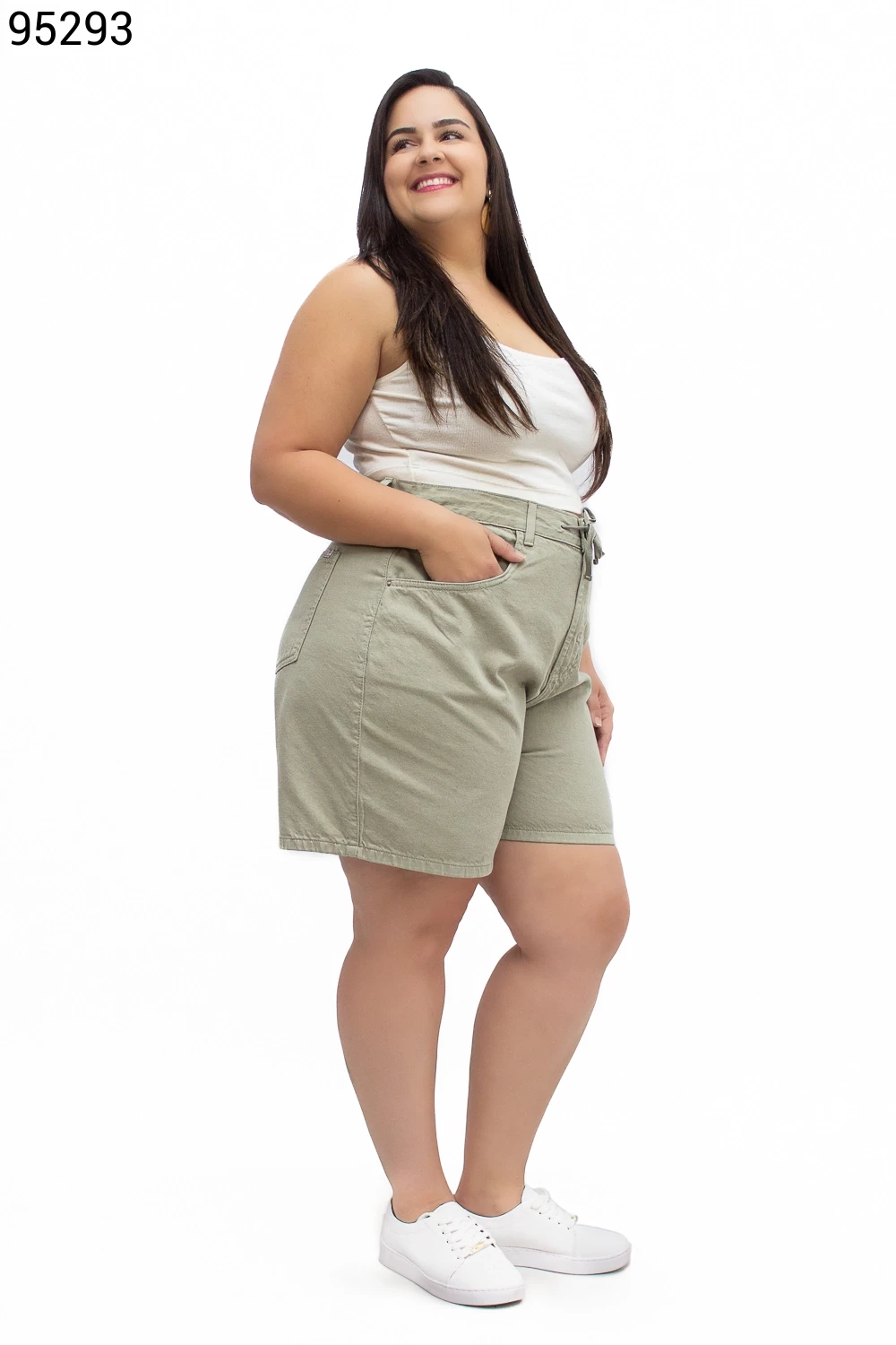 Ref.94466Bermuda Feminina Plus Size Soltinha com Elástico e Cordão - 94786