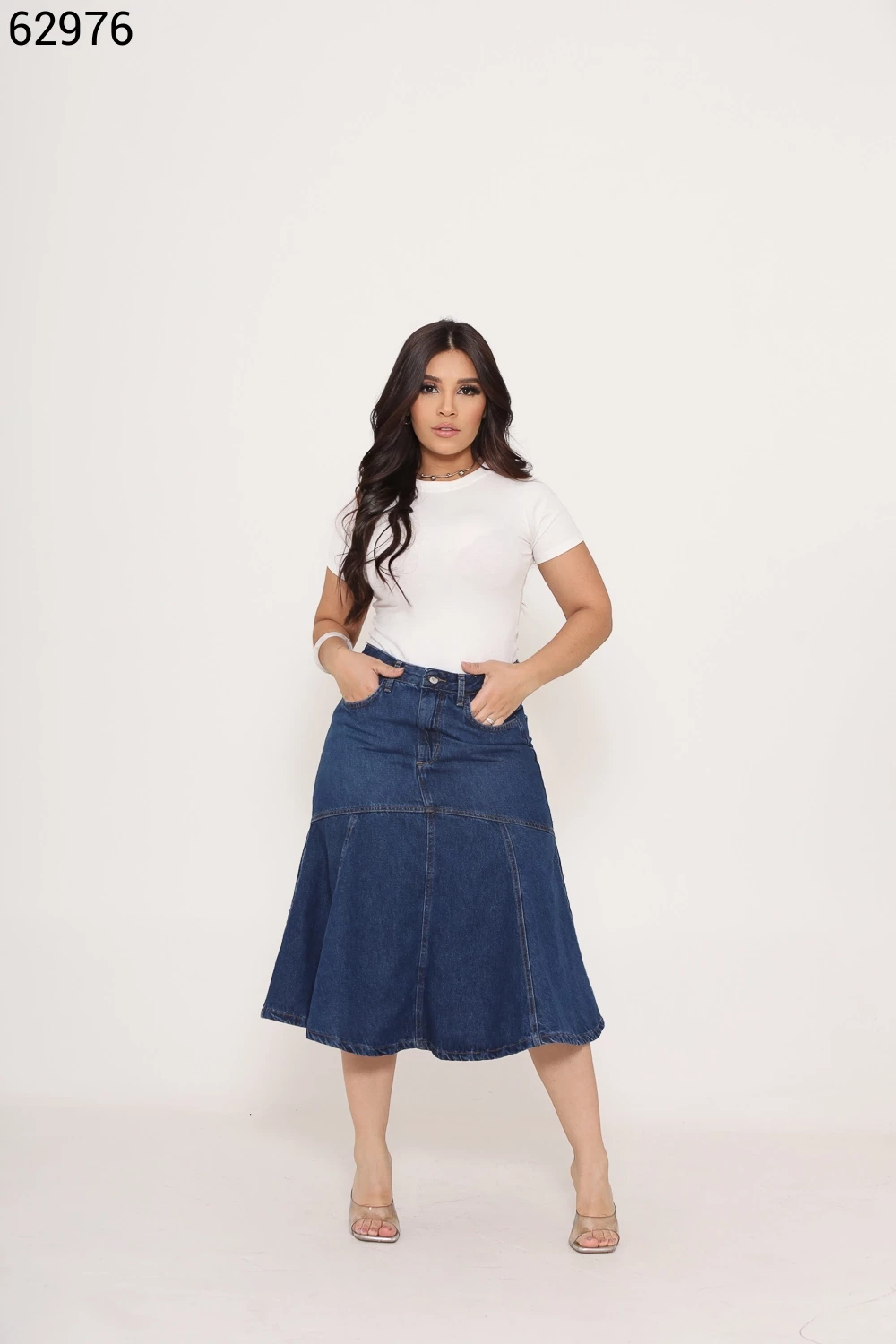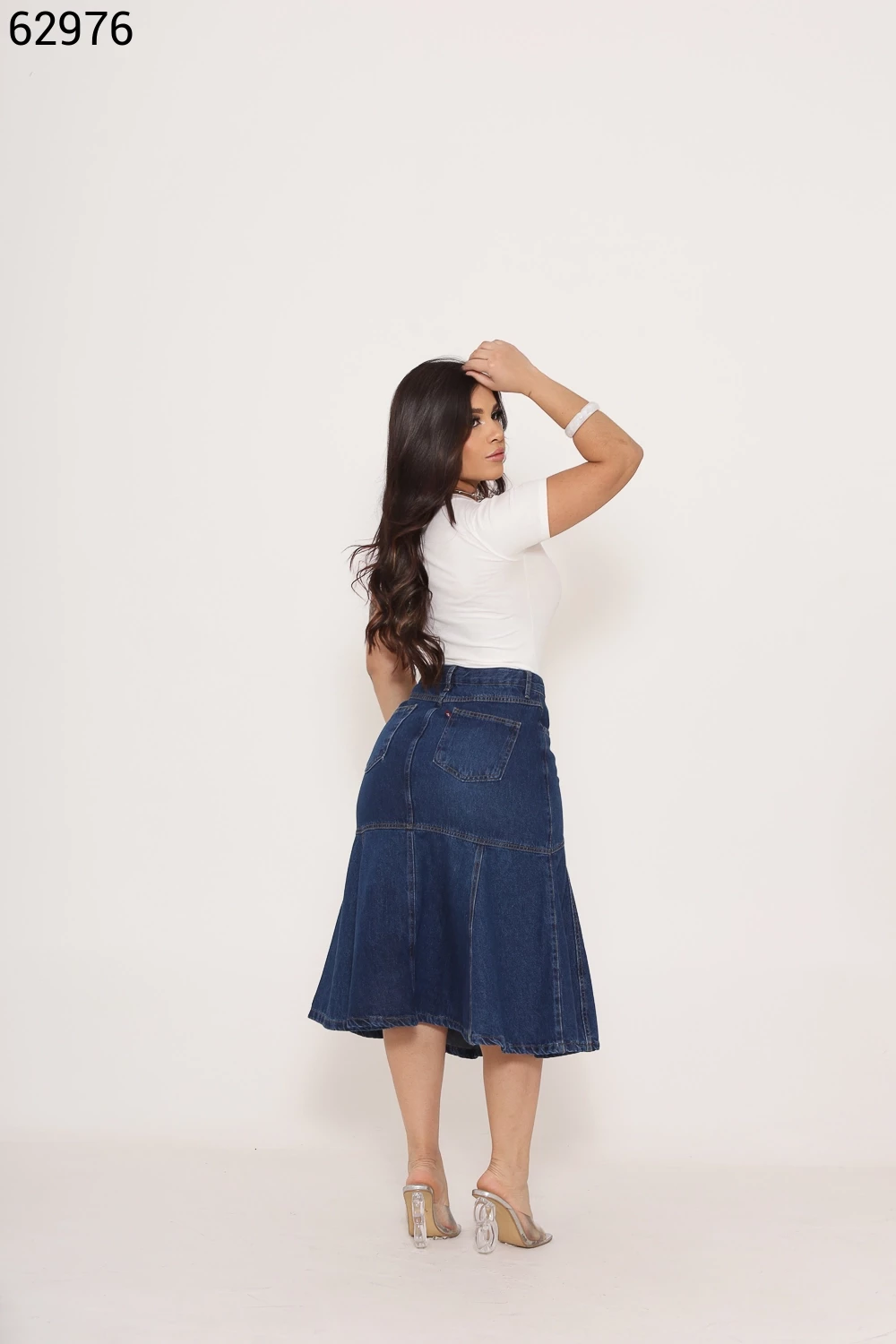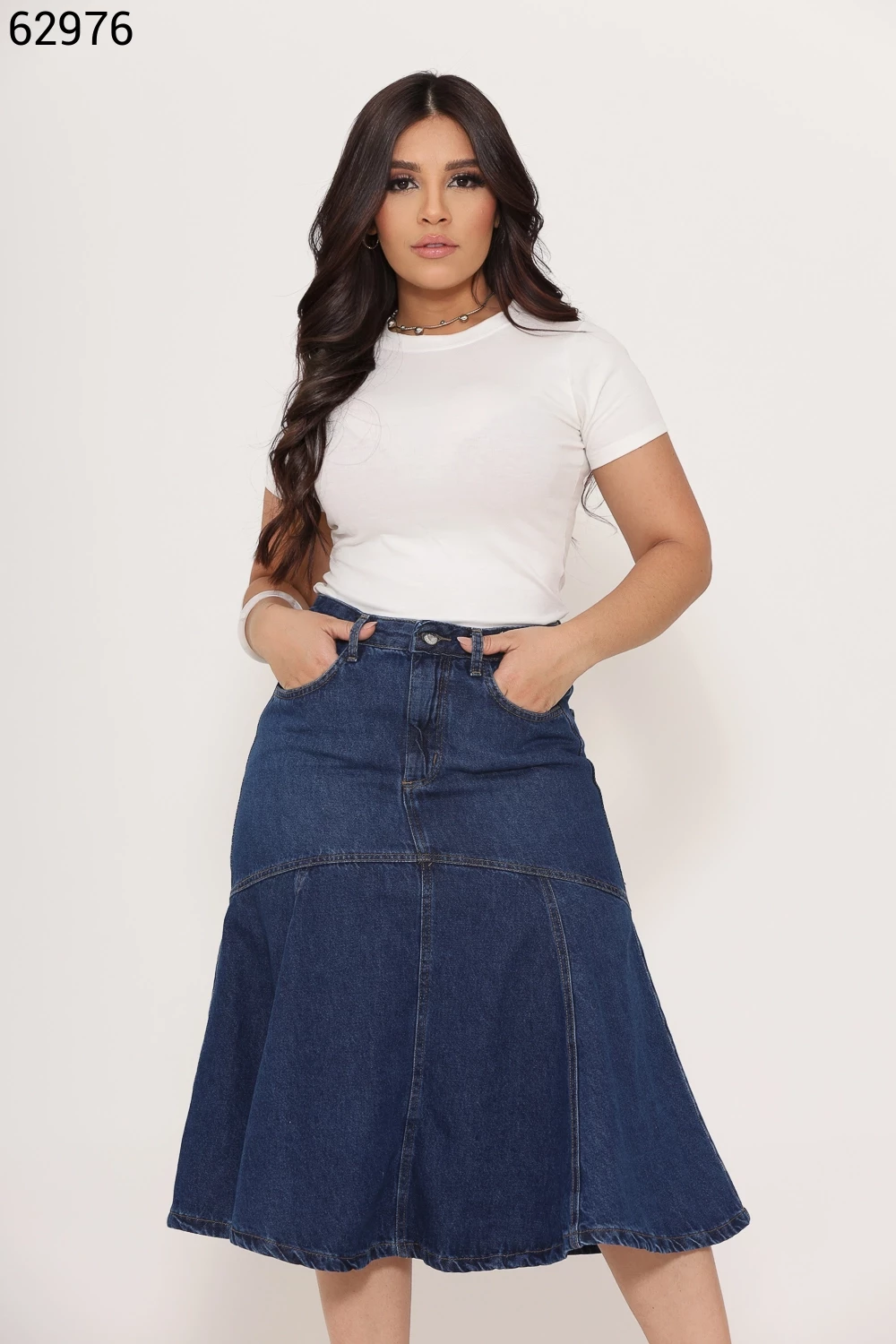 Saia Feminina Plus Size longa com Botões e Babado - 62596