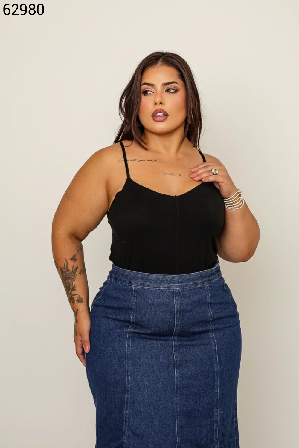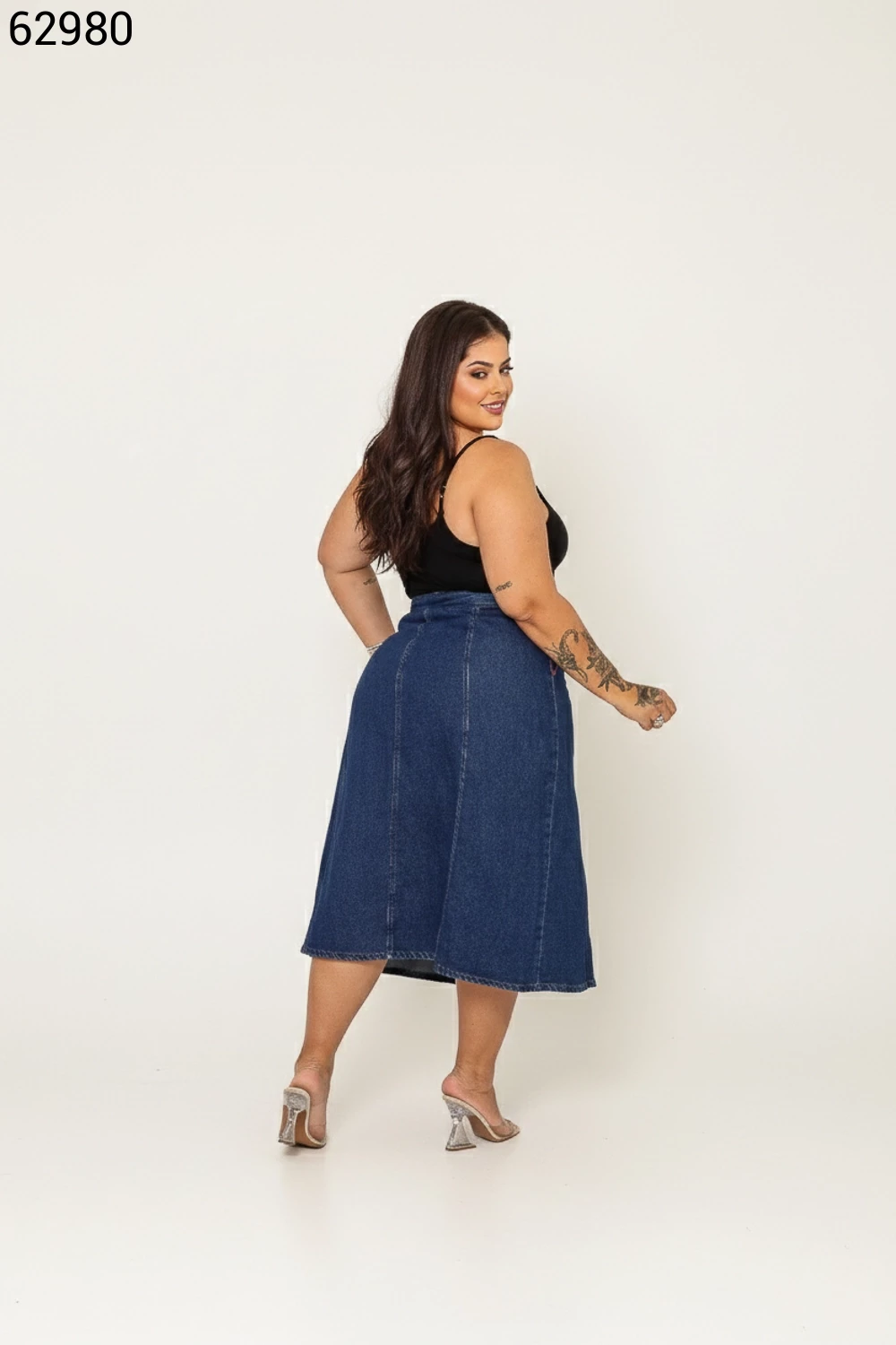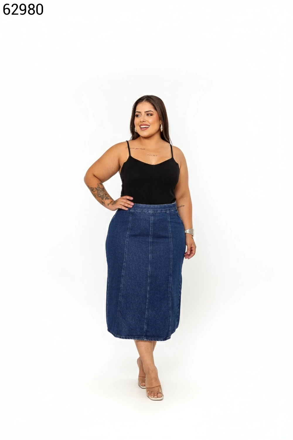 Ref.63076Saia Midi Plus Size Maria Com Botões