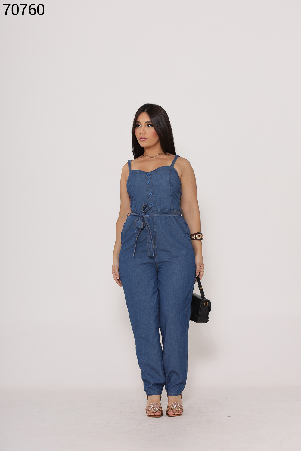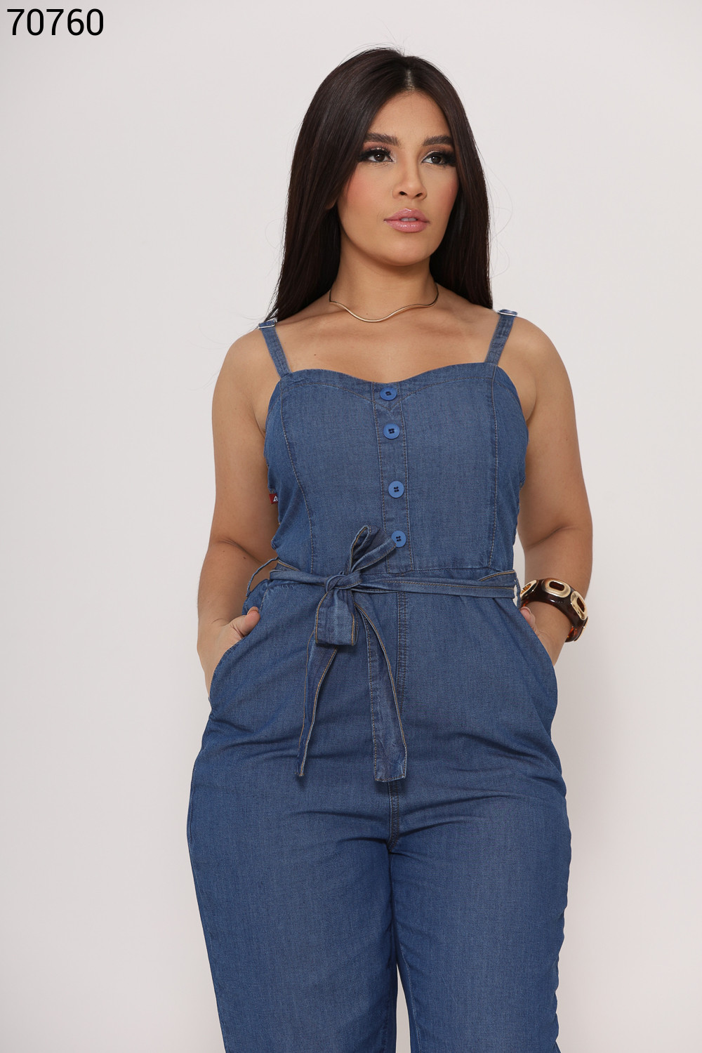 Macacão Feminino Pantalona Com Cinto