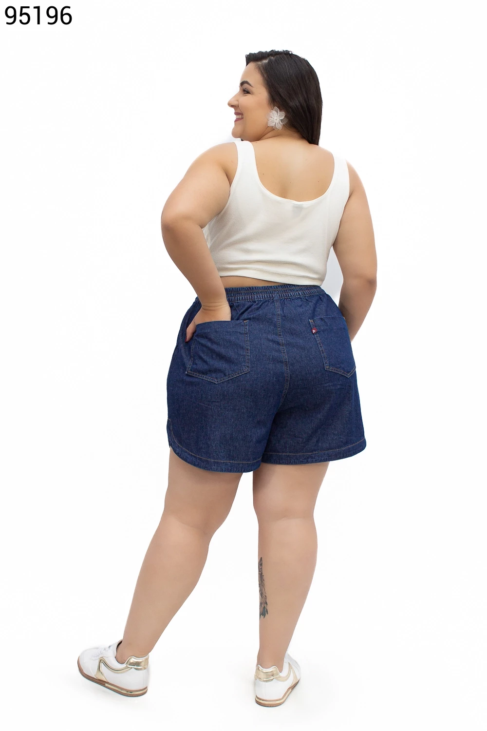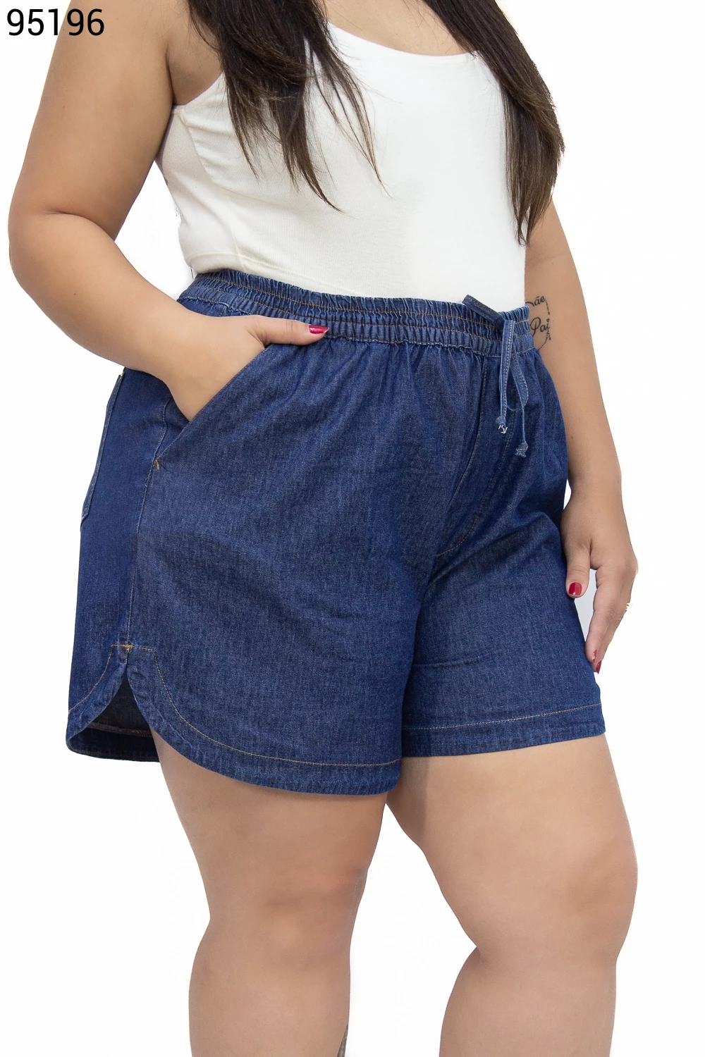 Ref.95112Shorts Feminino Plus Size com Elástico e Cordão no Cós