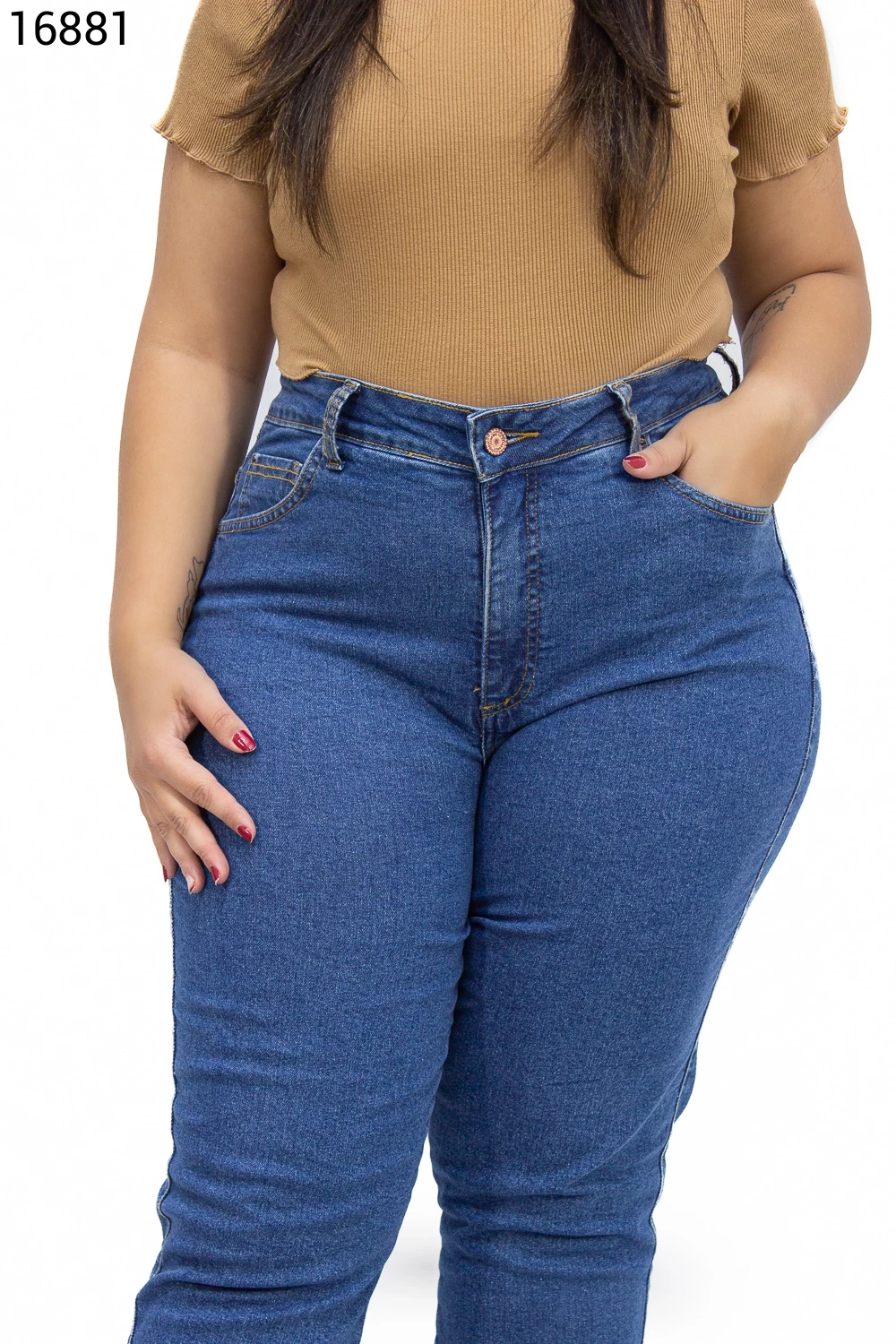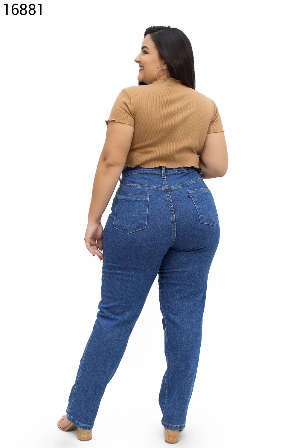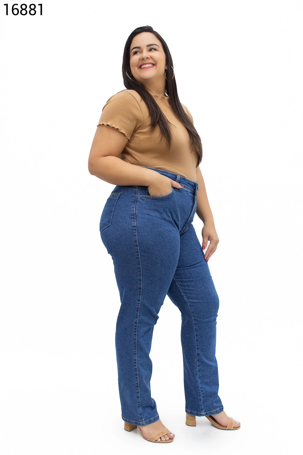 Ref.16889Calça Reta Feminina Plus com Detalhes de Costura - 15926