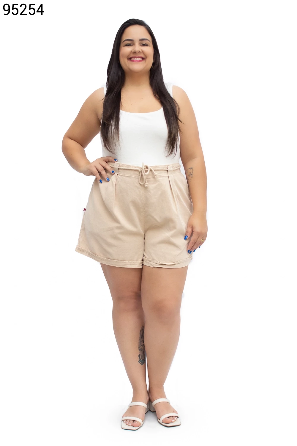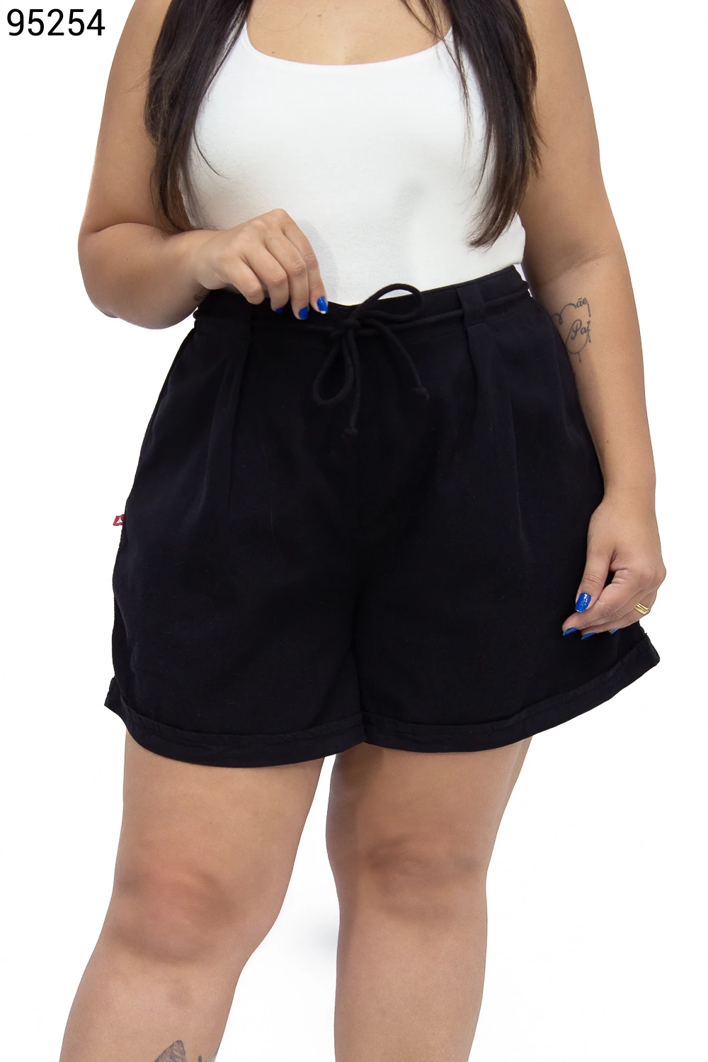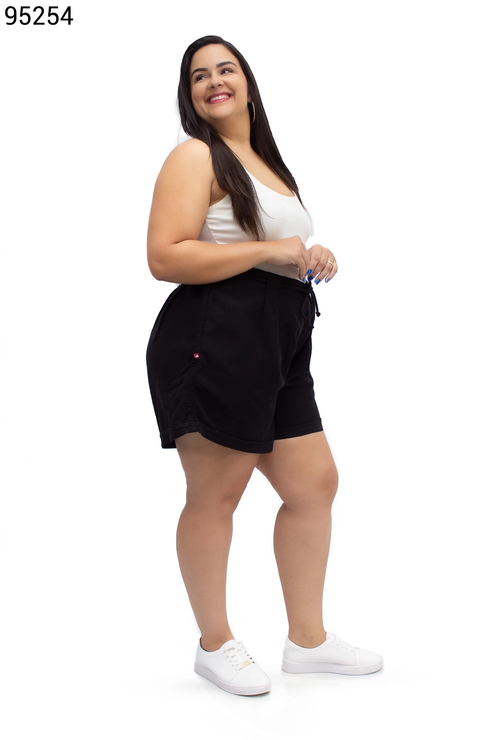 Shorts Feminino Plus Size com Elástico e Cordão no Cós