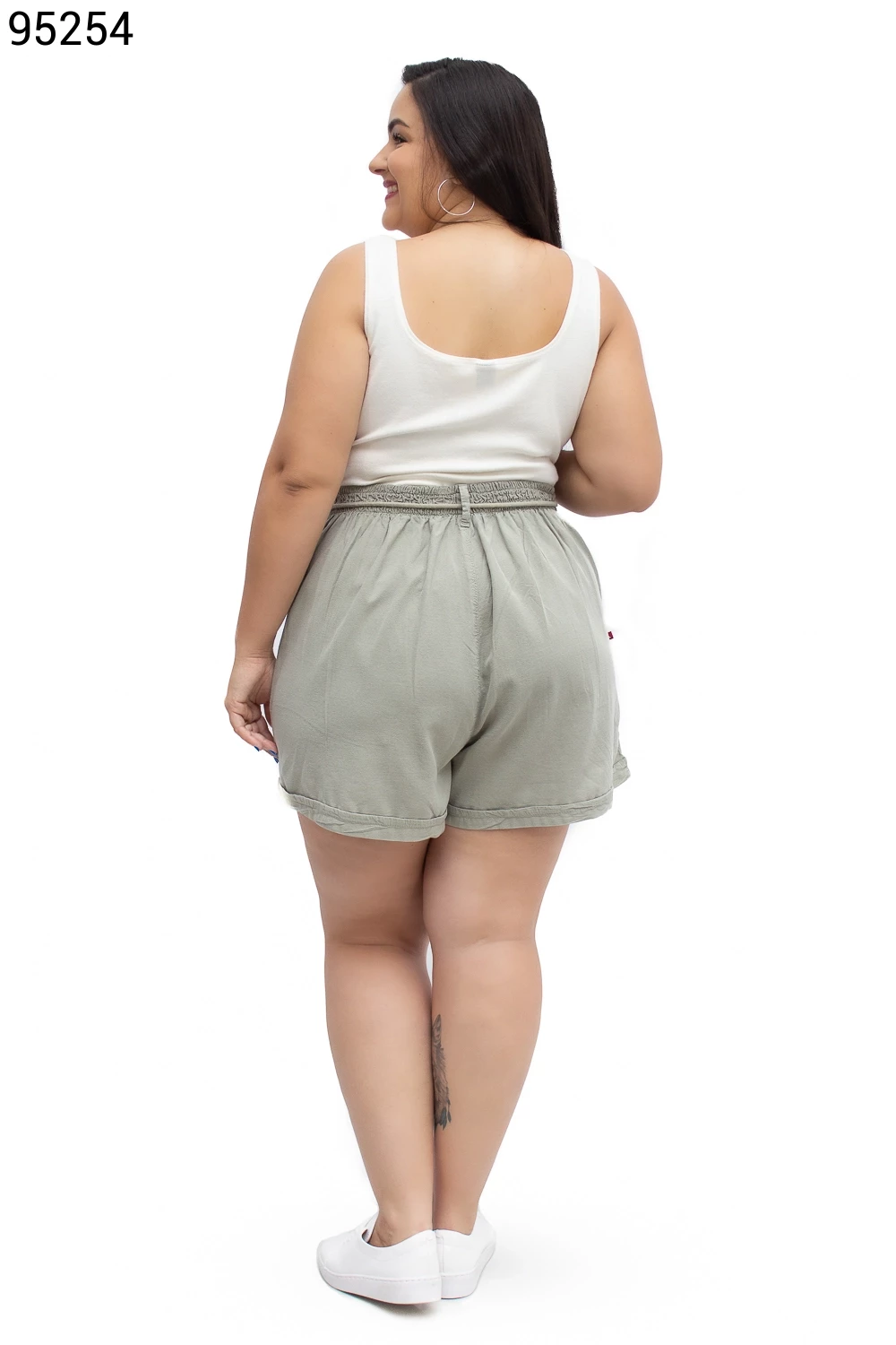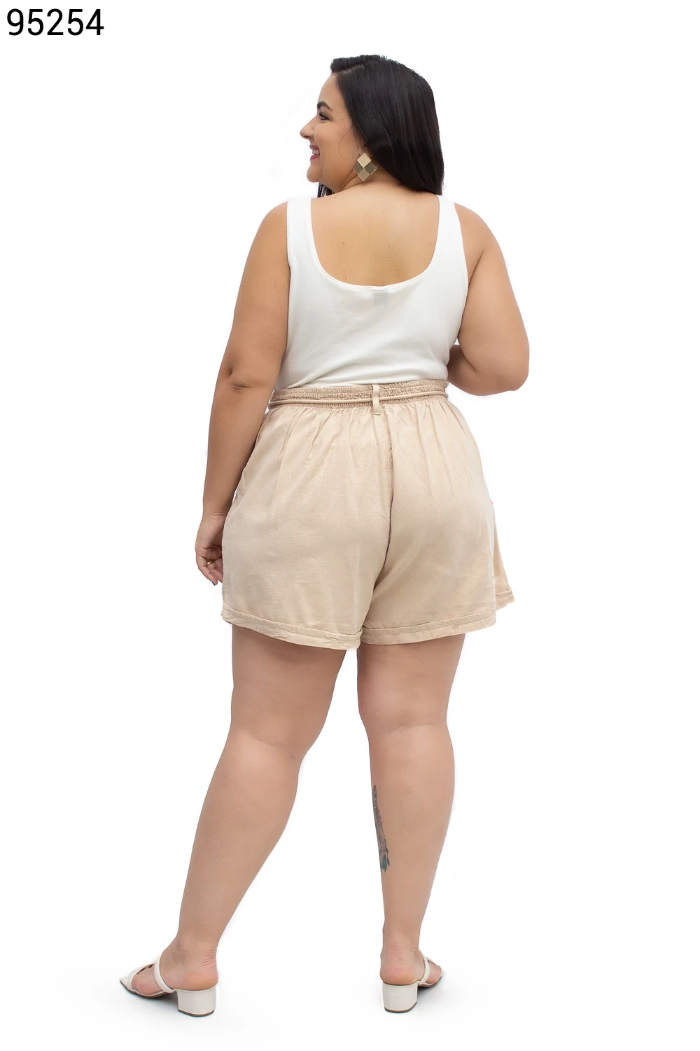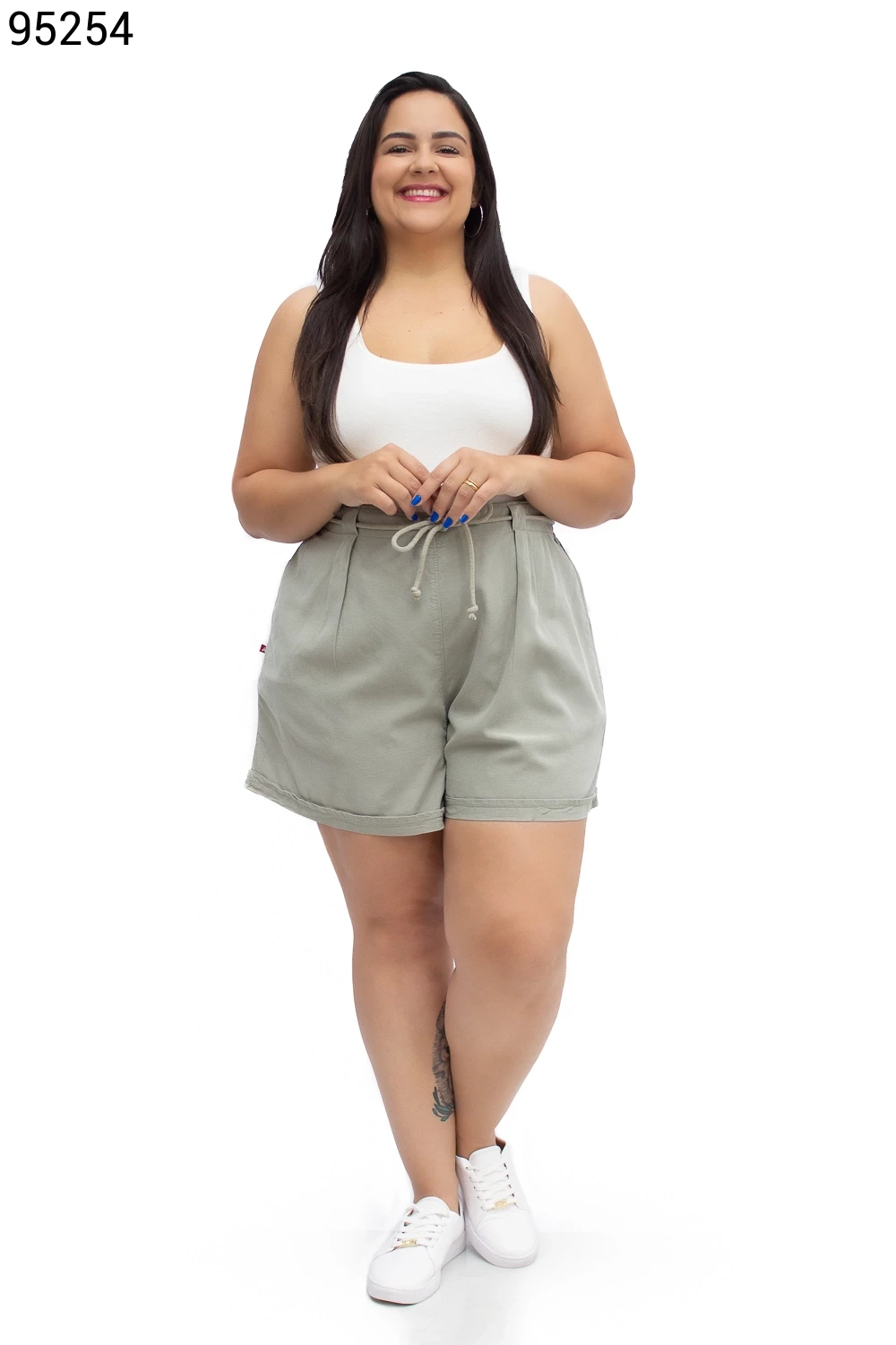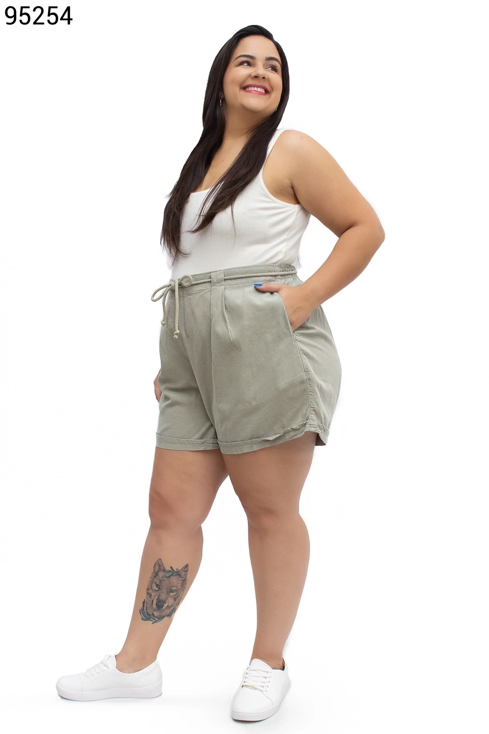 Shorts Feminino Plus Size com Elástico e Cordão no Cós