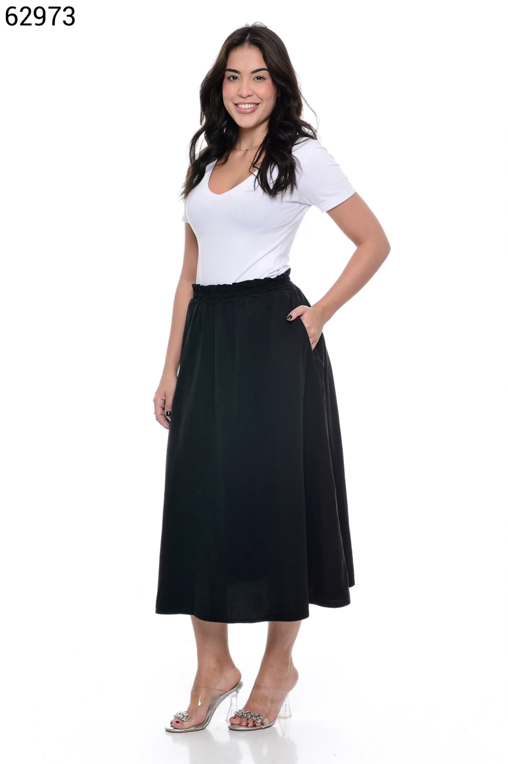 Ref.62622Saia Feminino Midi Regular Com Recorte