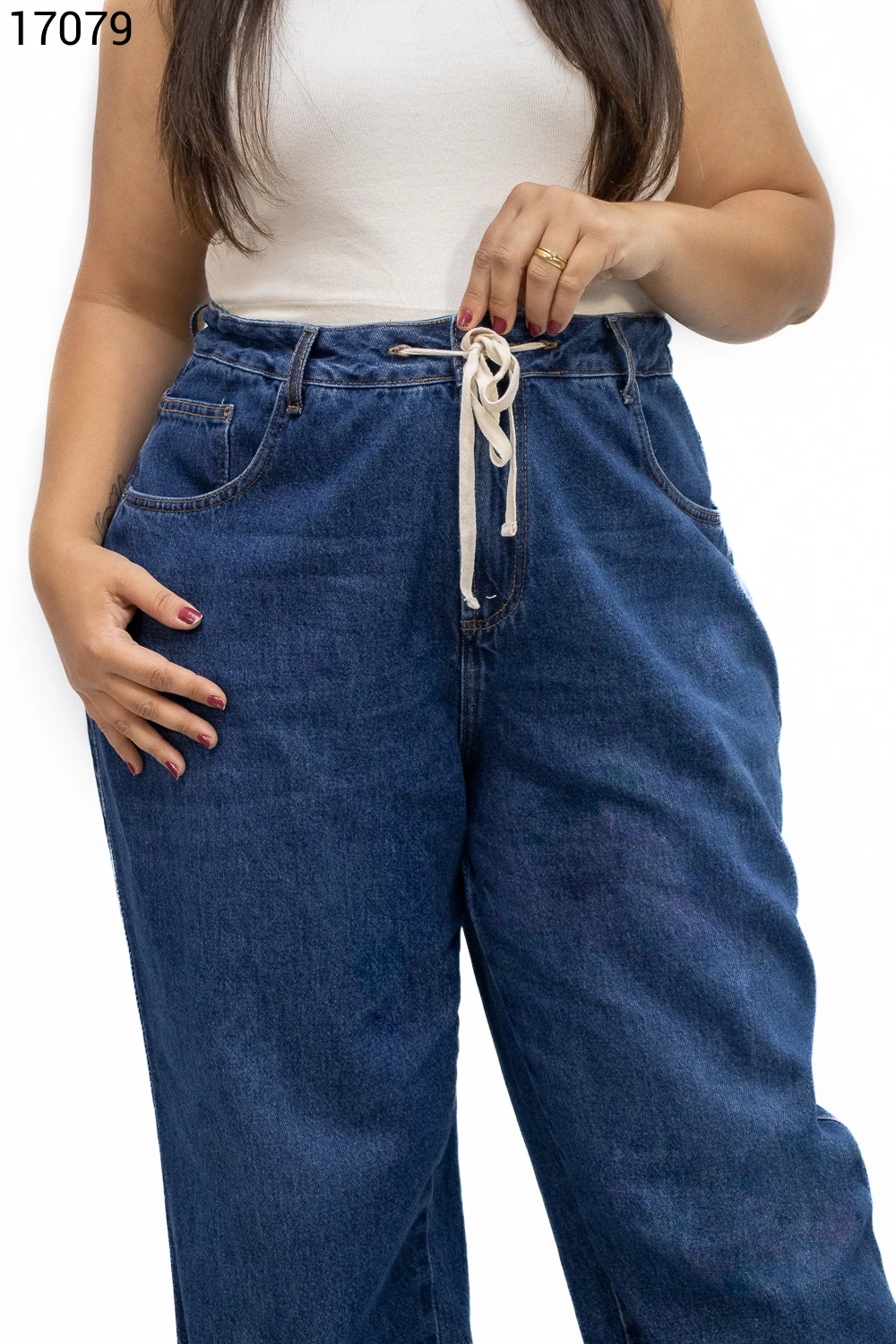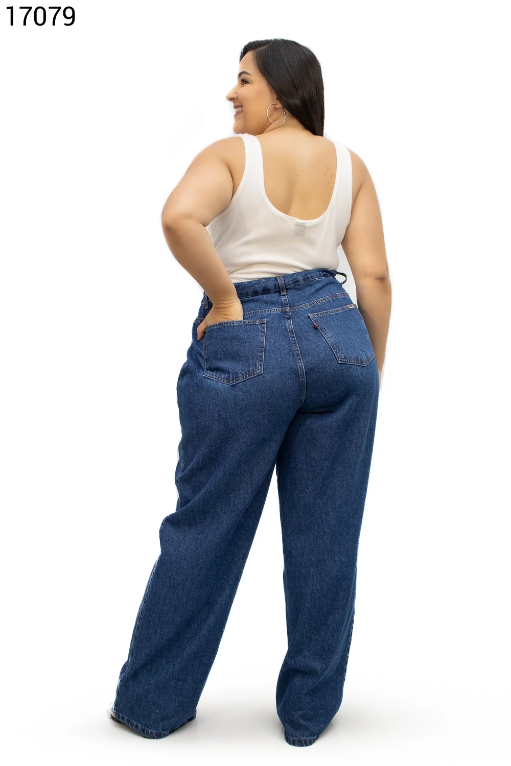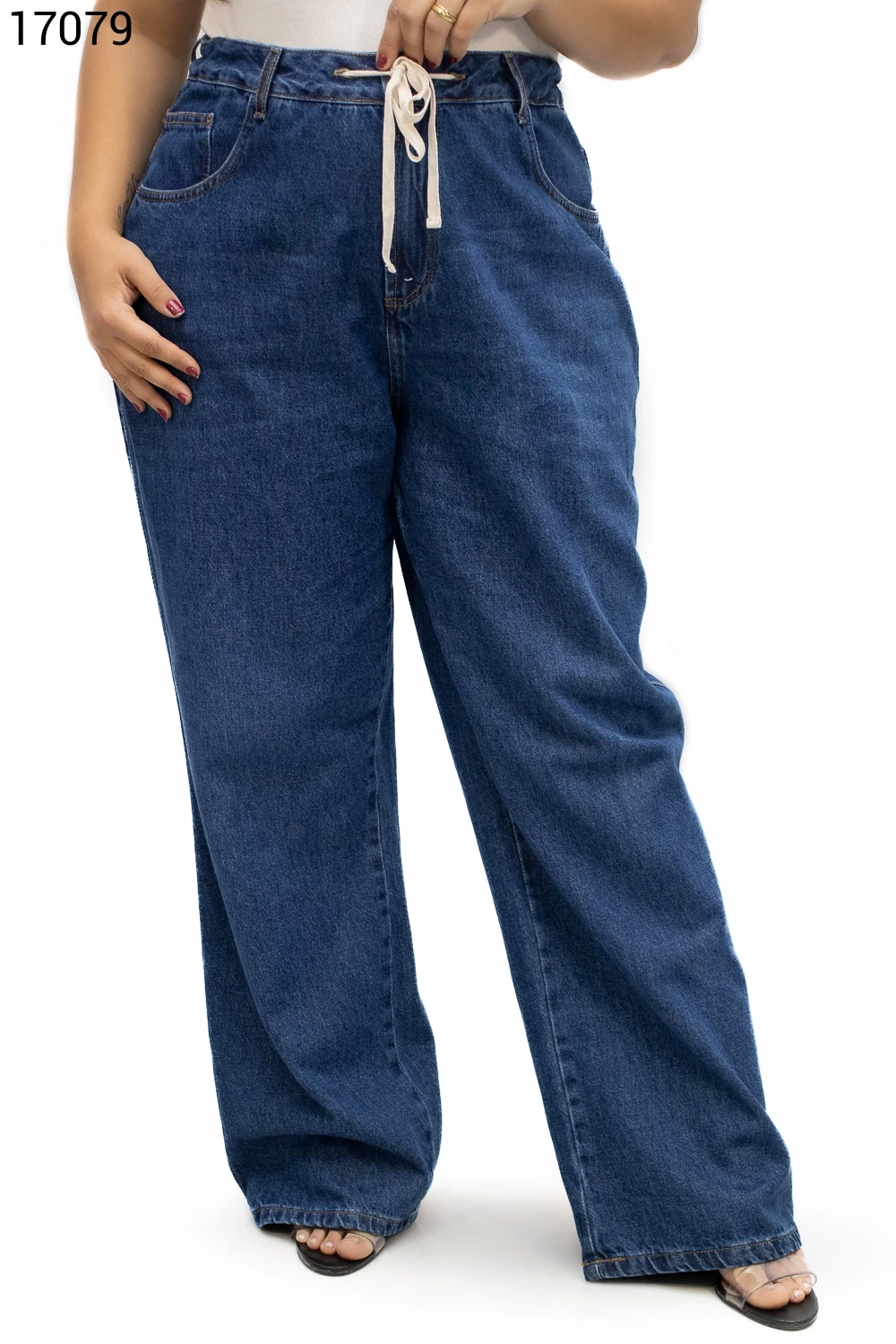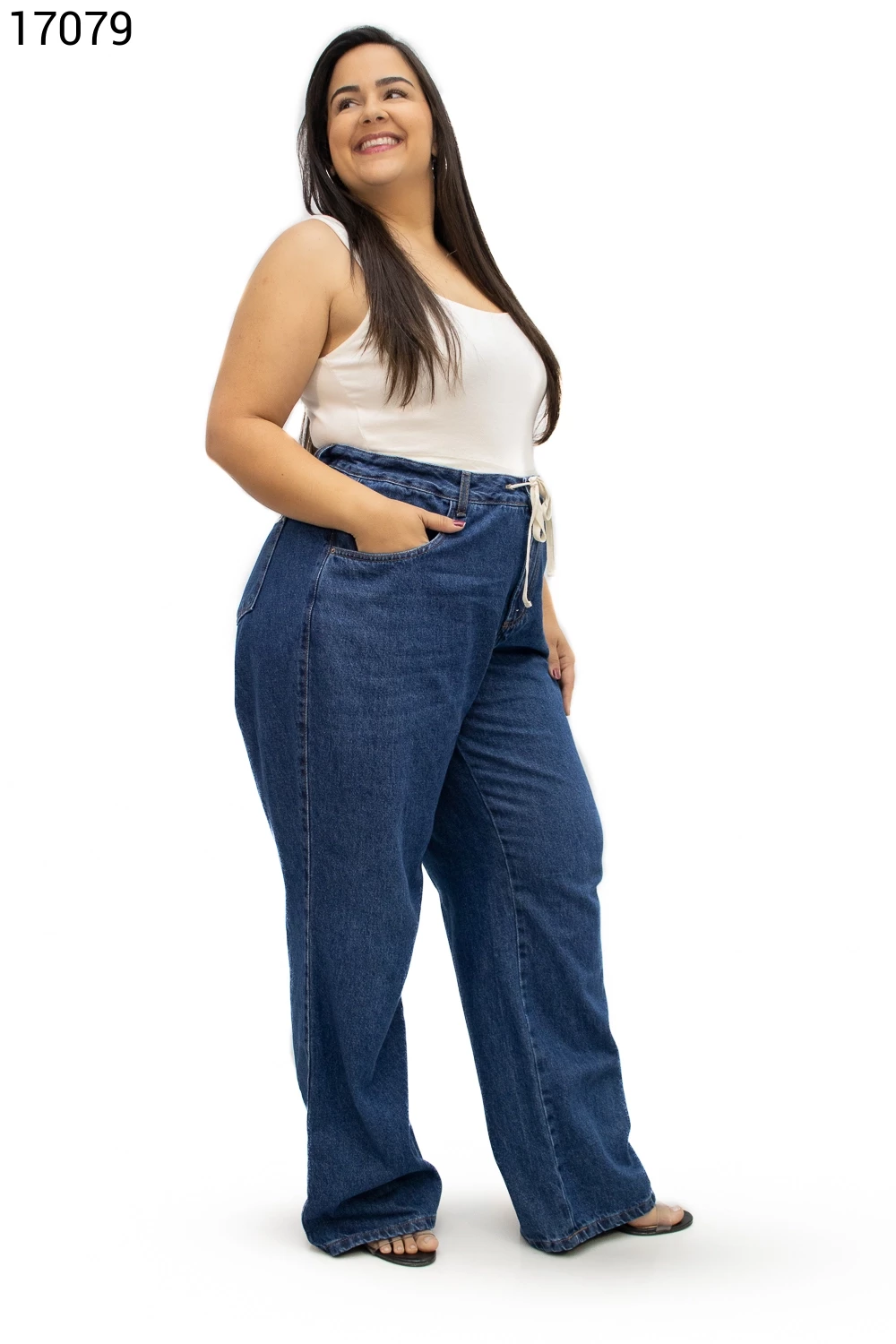 Calça Feminina Plus Size Wide Leg Slim com Cordão No Cós