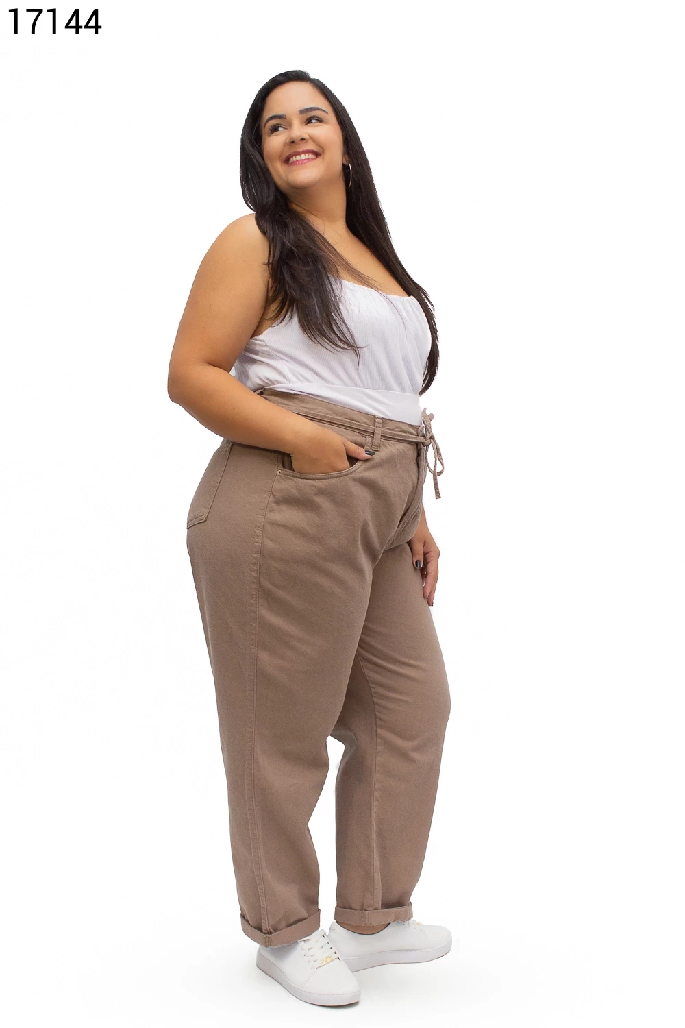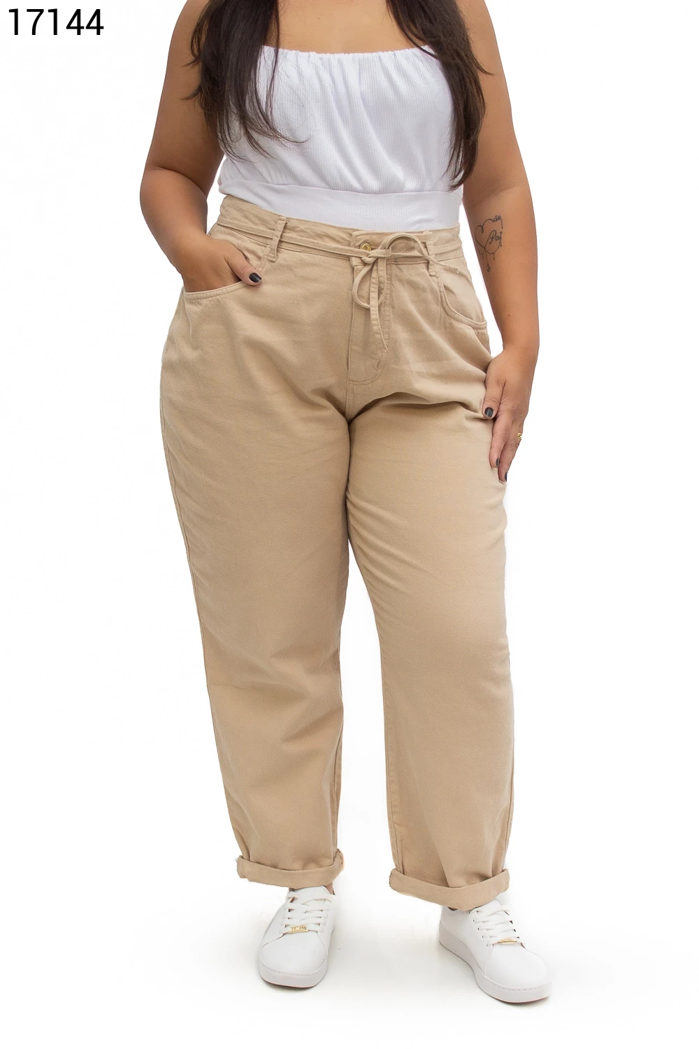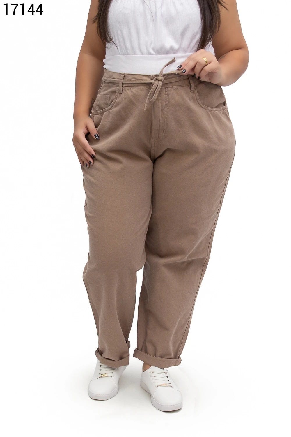 Calça Fem Mom Plus Size com Cordão do Mesmo Tecido
