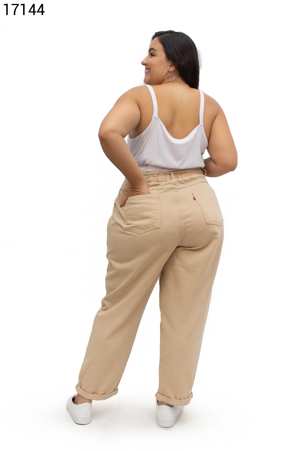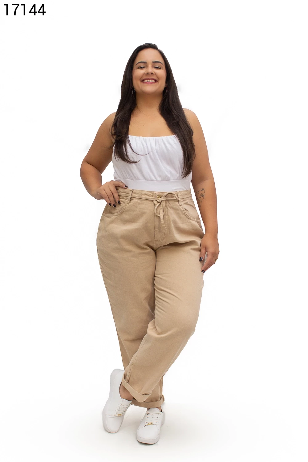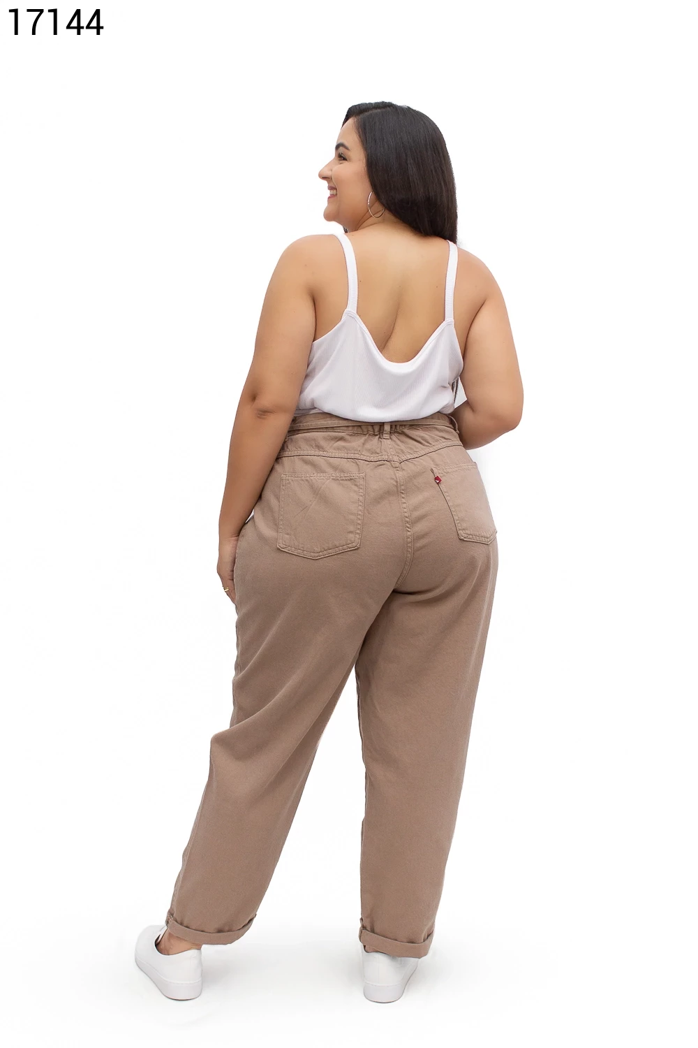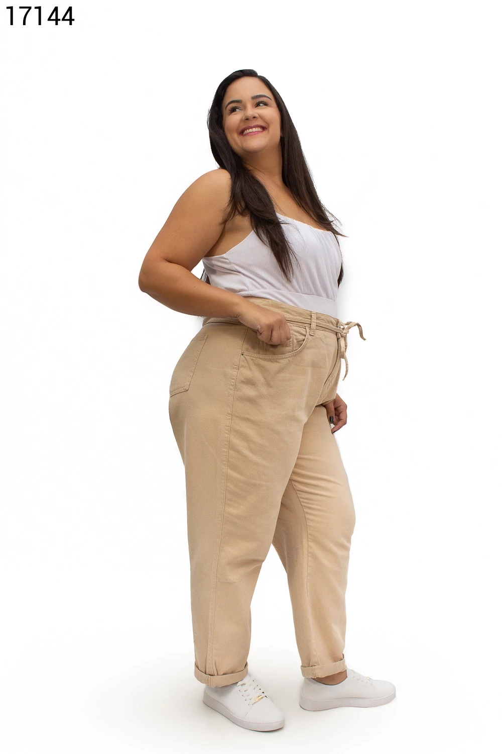 Calça Fem Mom Plus Size com Cordão do Mesmo Tecido