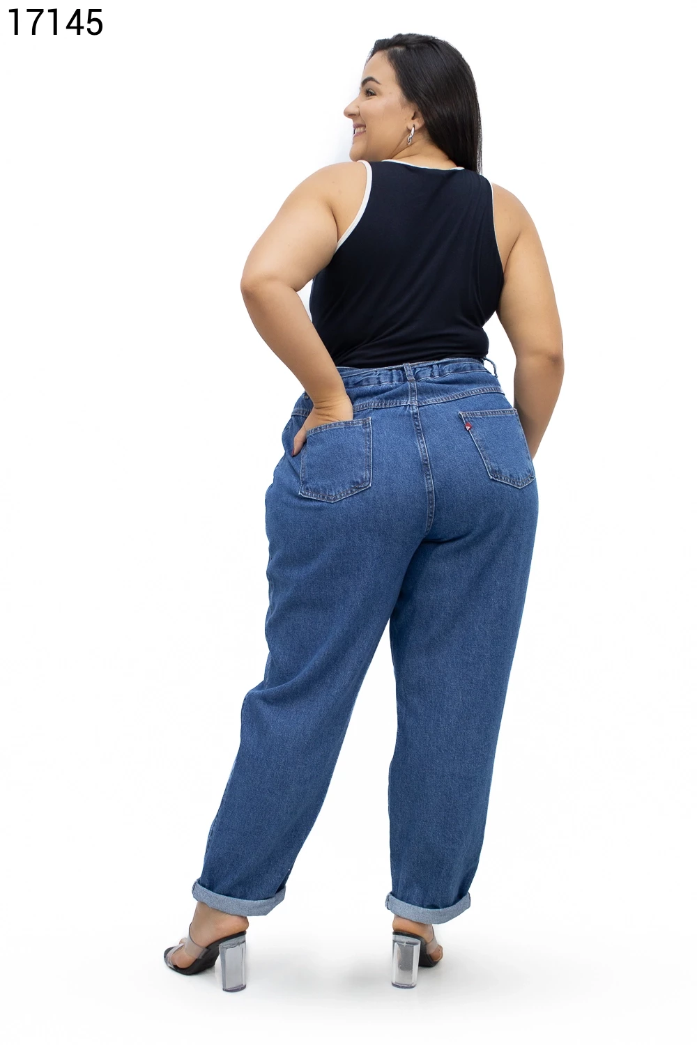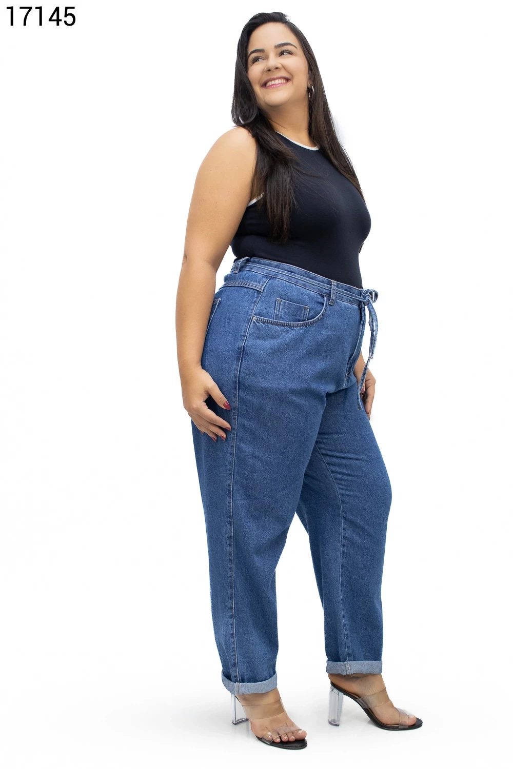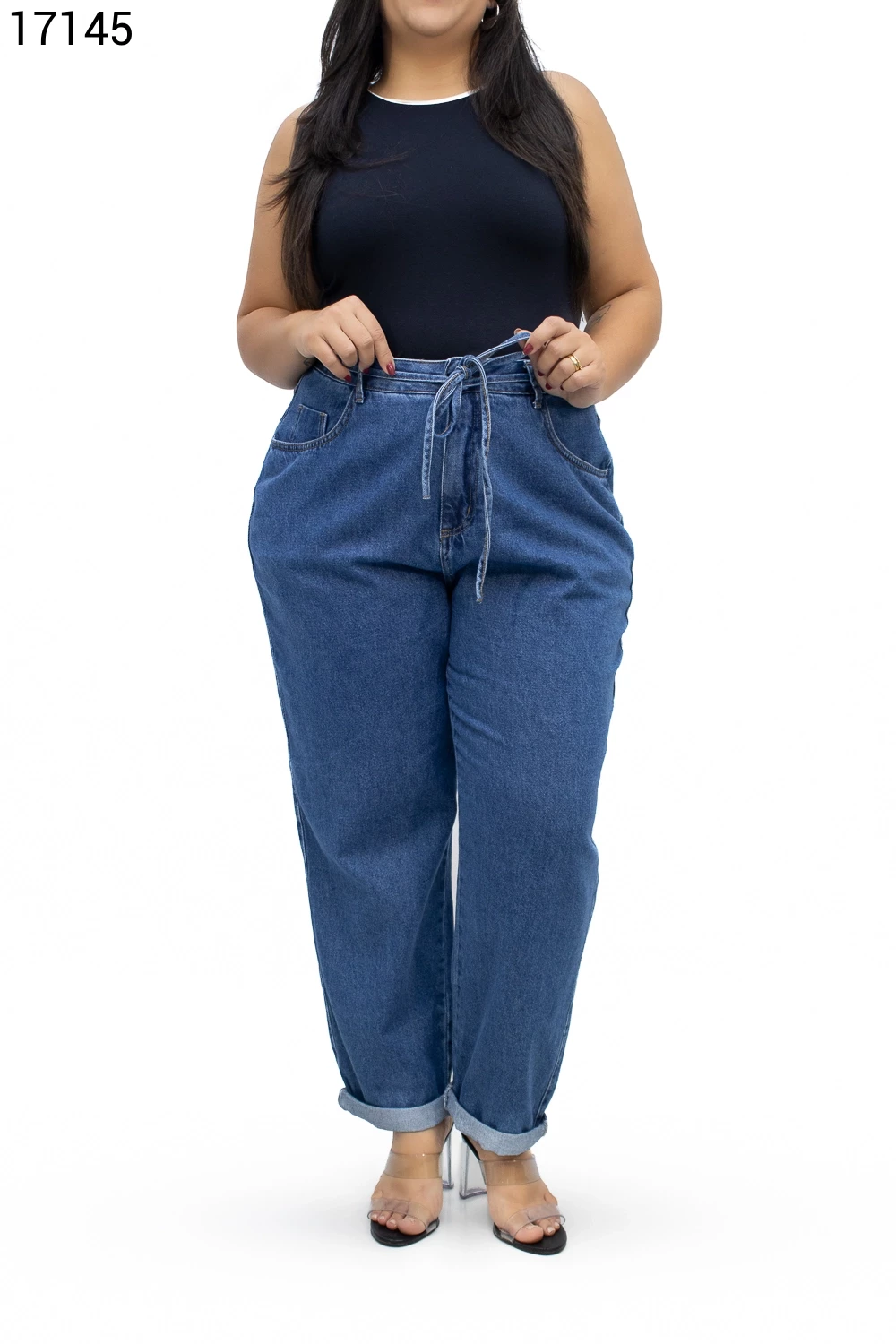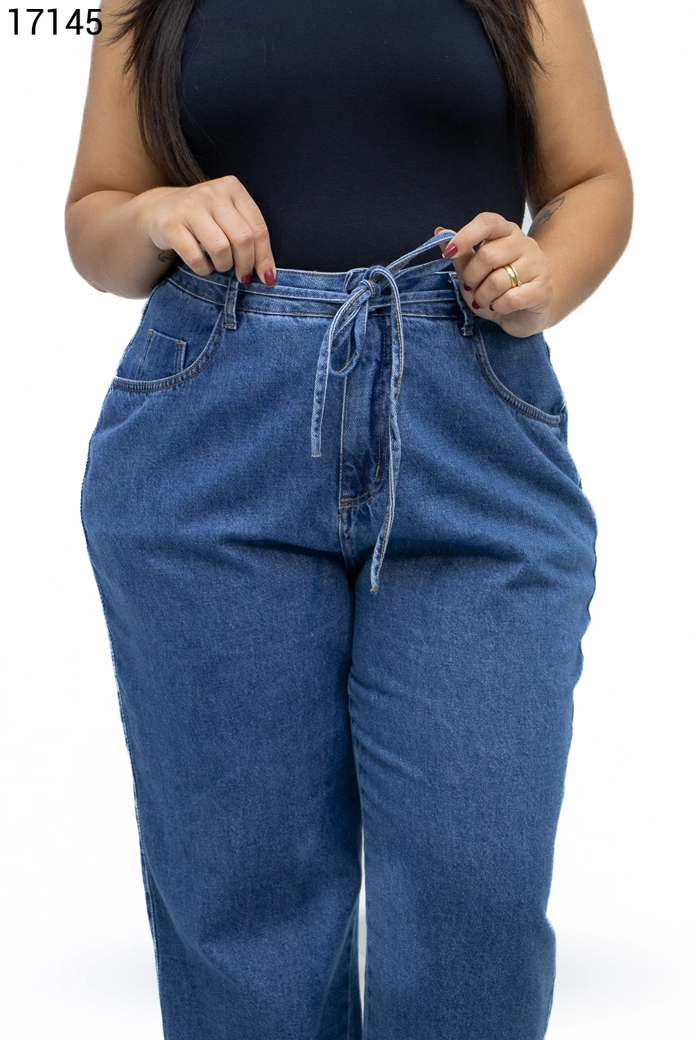 Calça Feminino Mom Plus Size com Cordão do Mesmo Tecido