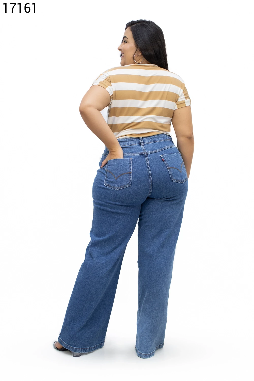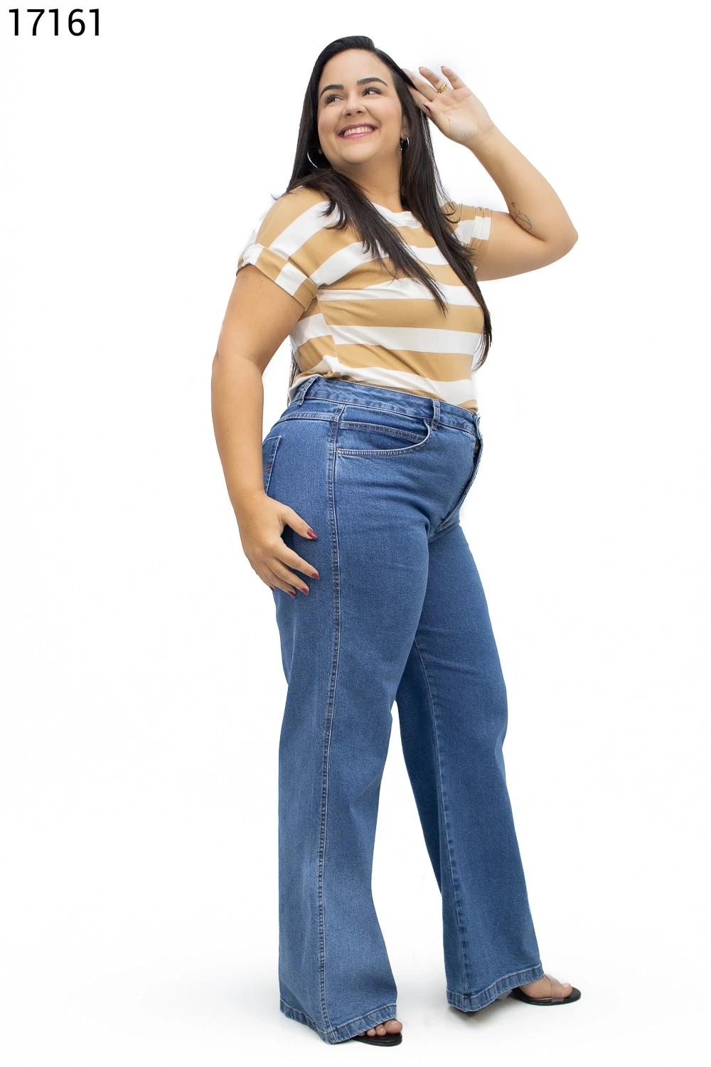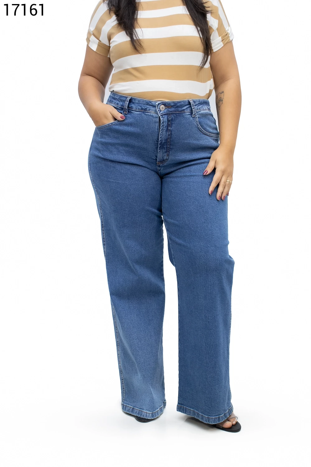 Ref.17079Calça Fem Wide Leg Plus Size Básica com Cinto