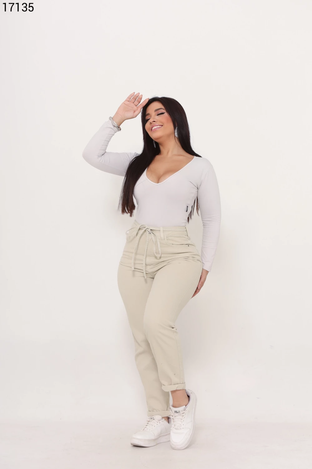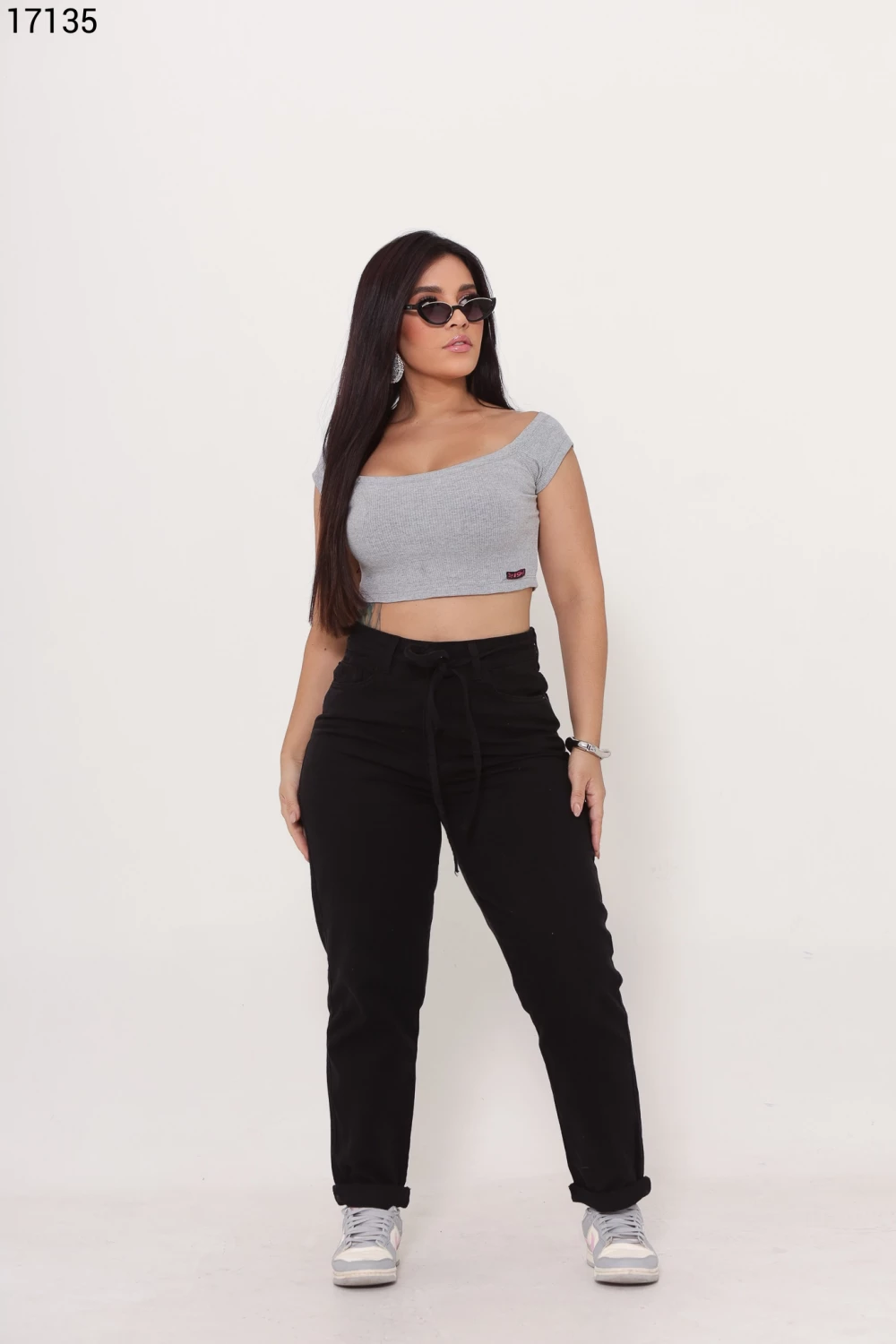 Ref.17147Calça Feminina Wide Leg Slim com Cordão no Cós