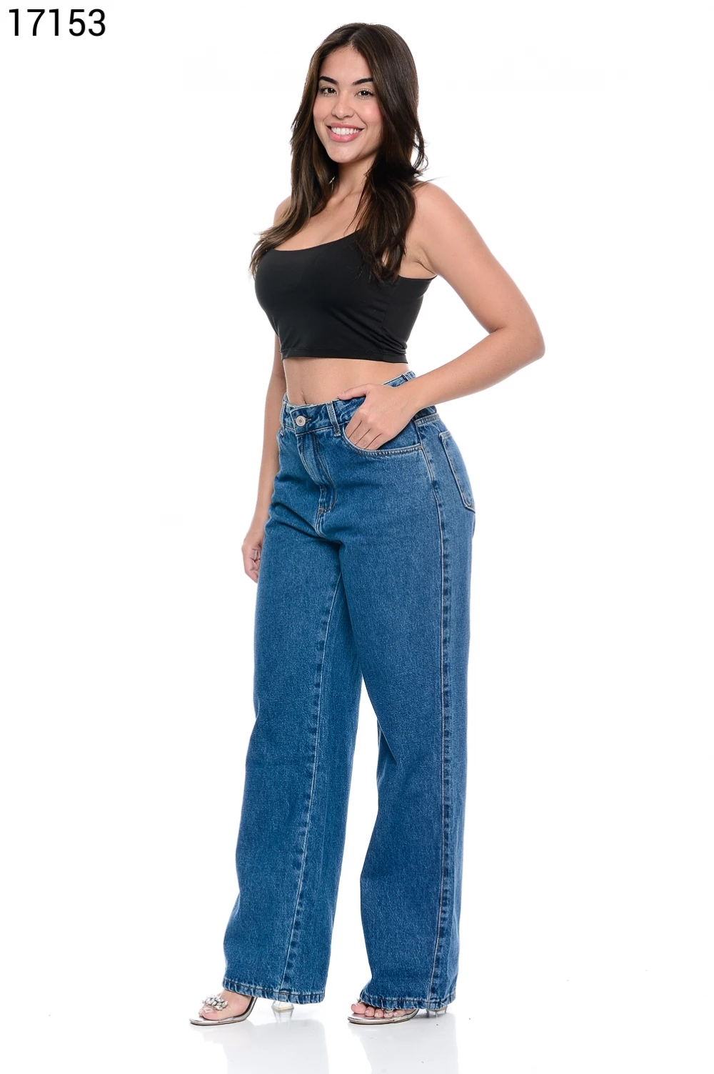 Ref.15654Calça Feminino Pantalona Regular com Bolso Lateral