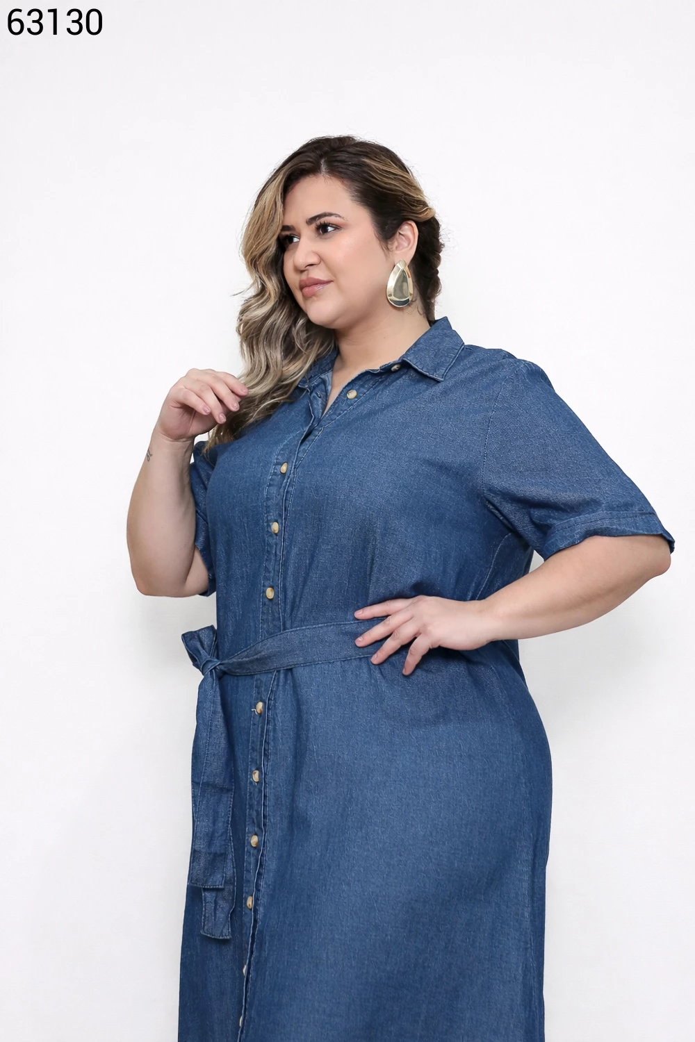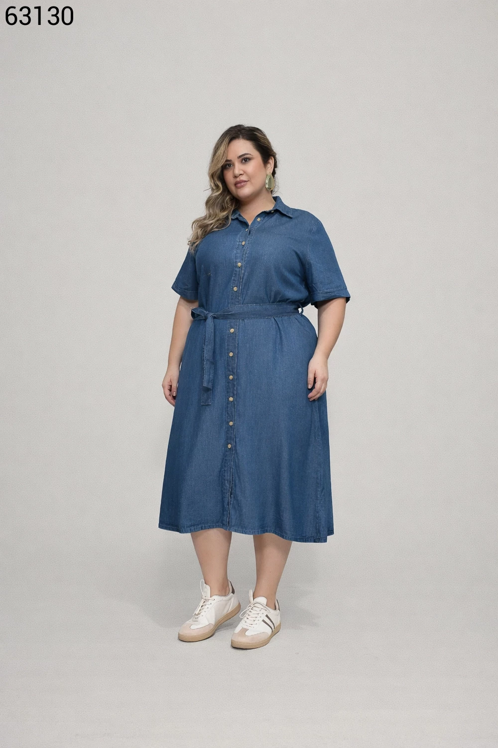 Vestido Feminino Midi Plus Size com Cinto