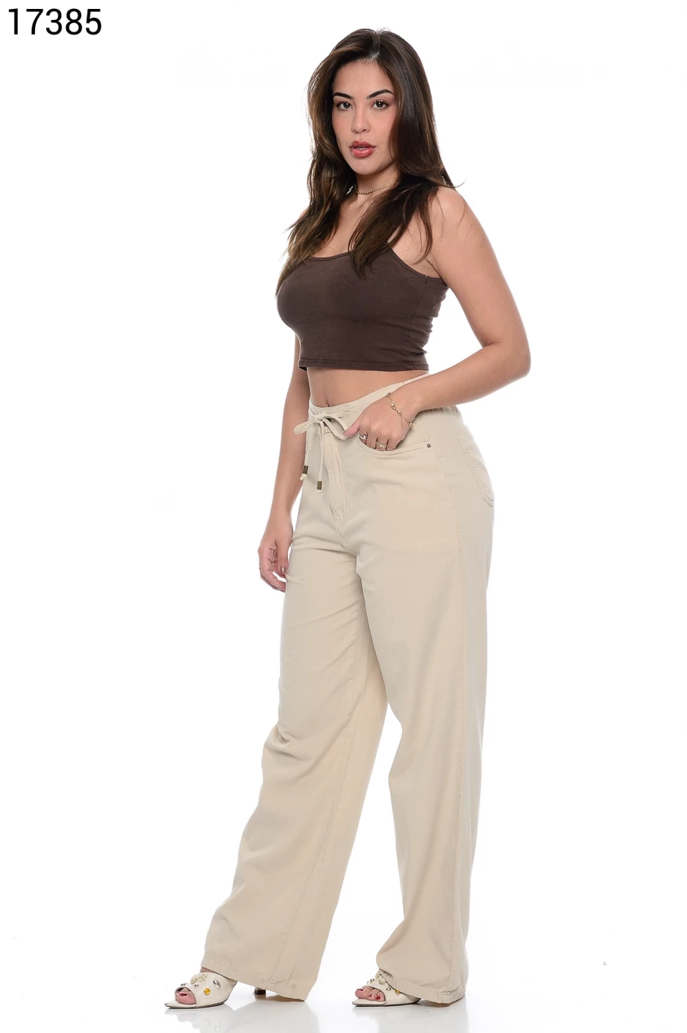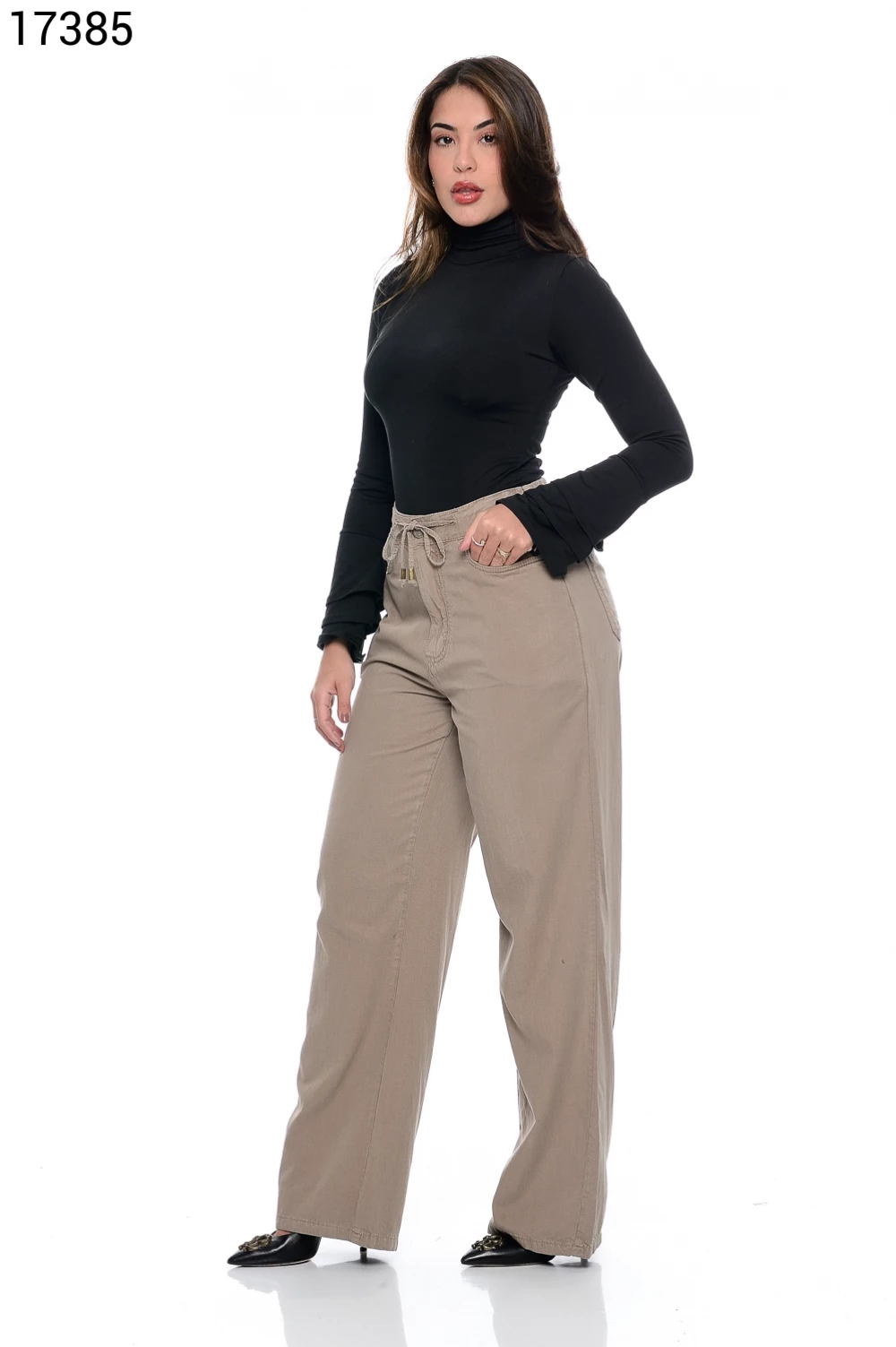 Ref.17134Calça Fem Wide Leg Slim Regular Tradicional