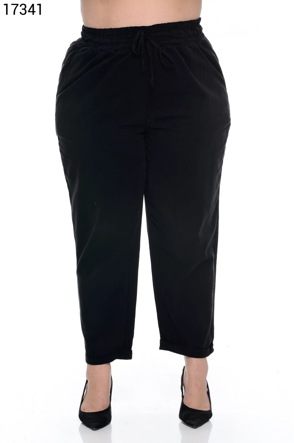 Ref.17144Calça Feminina Plus Size Wide Leg Slim com Cordão do Mesmo Tecido
