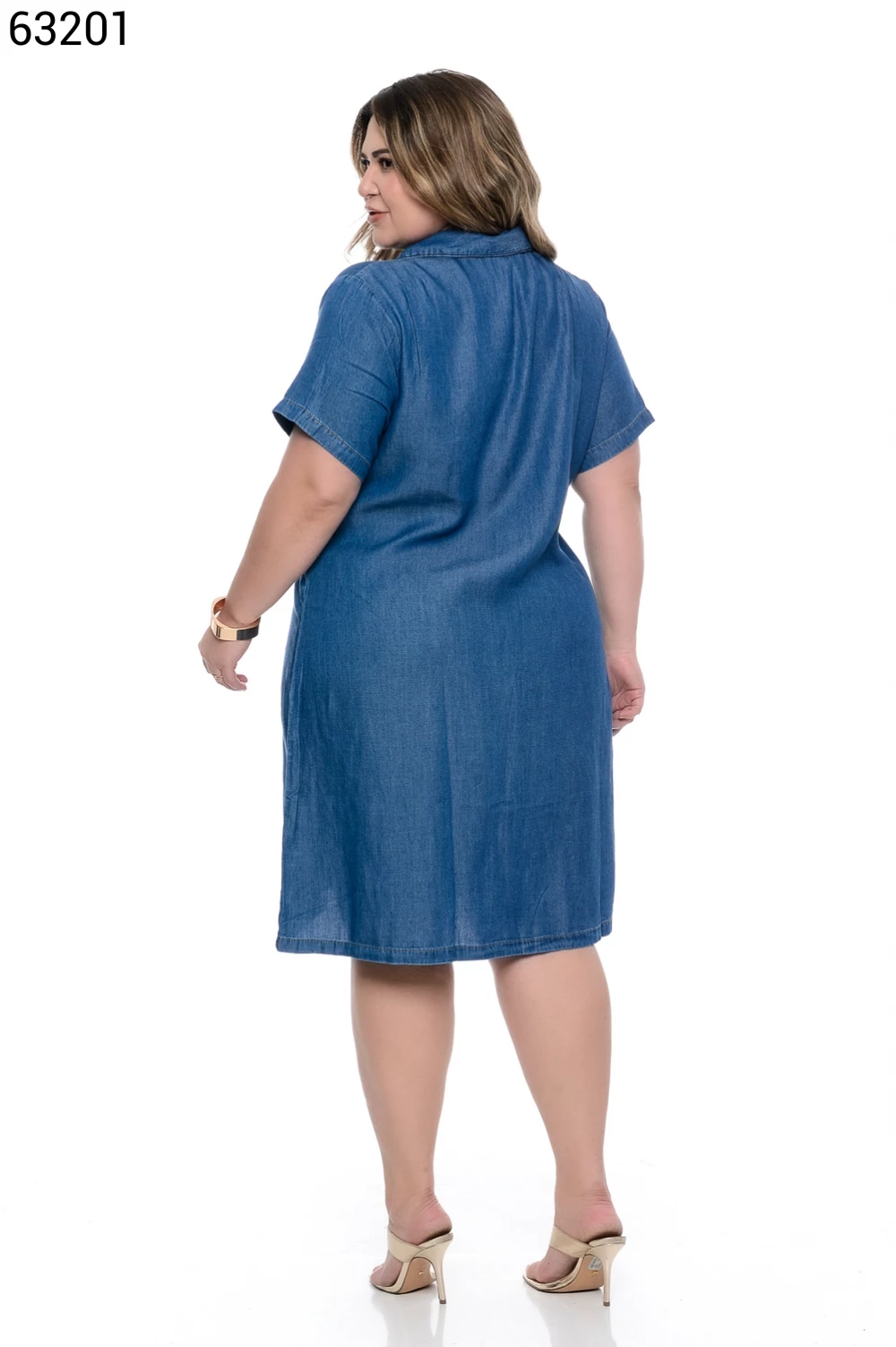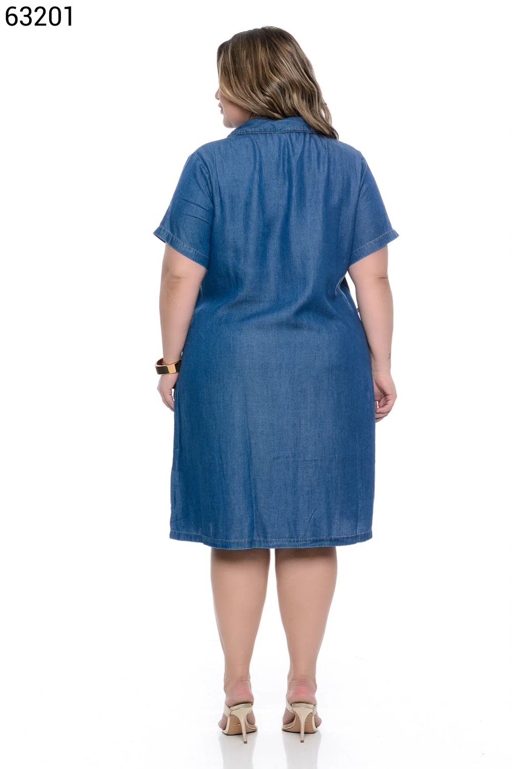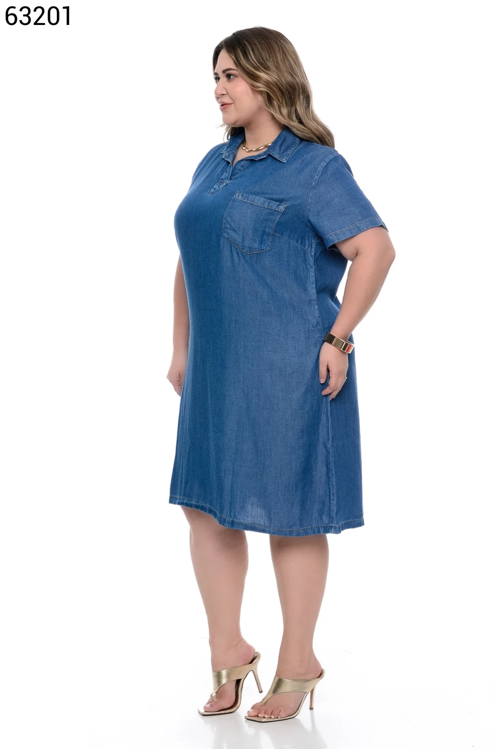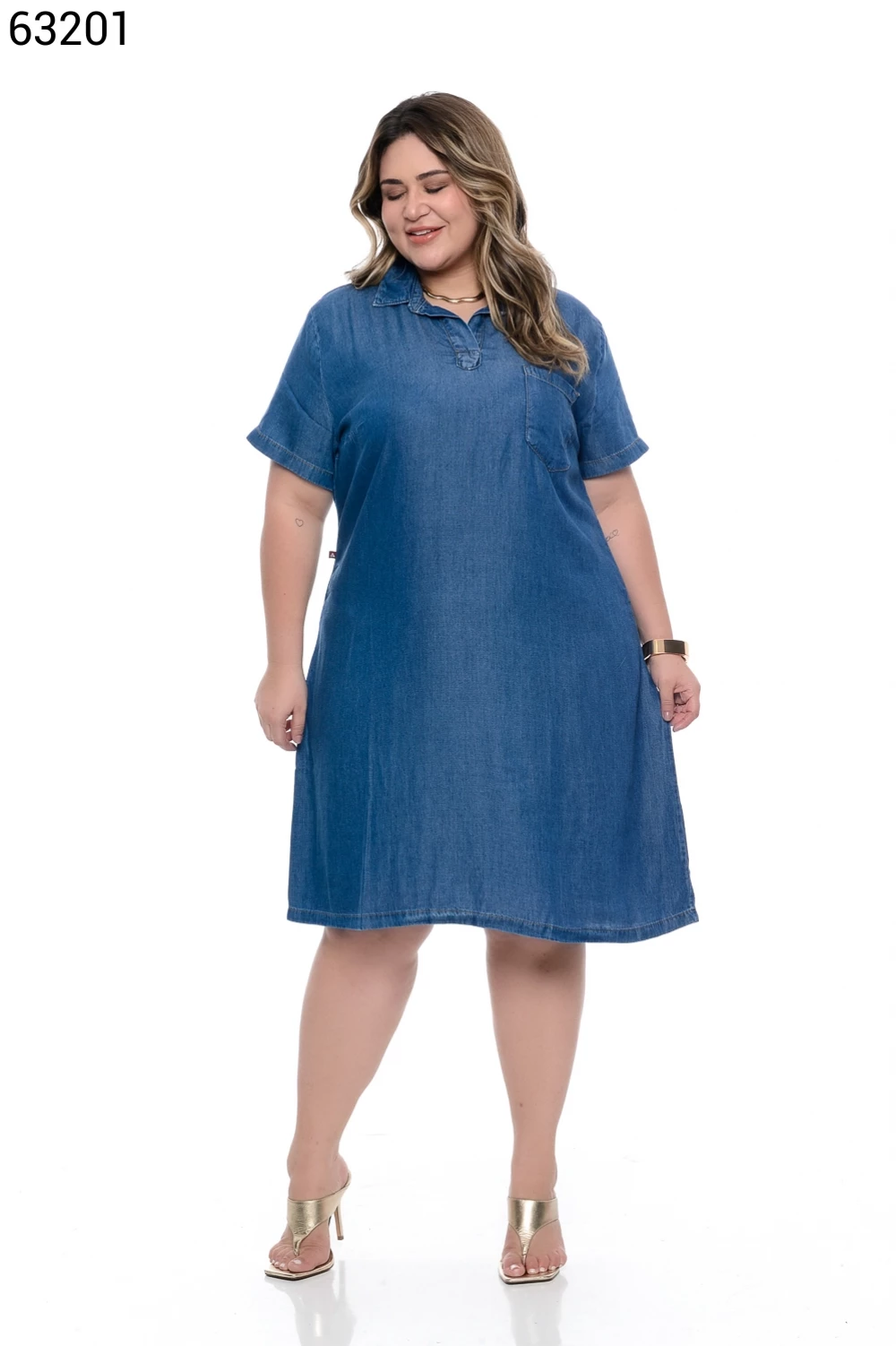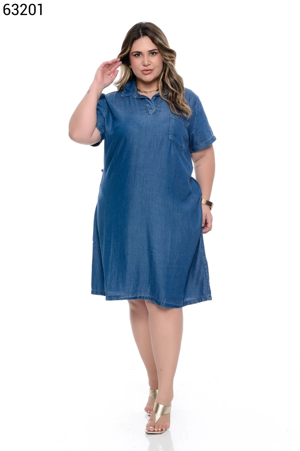 Ref.63130Vestido Fem Plus Size Curto com Manga Curta