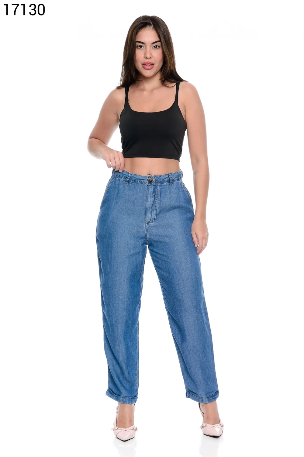 Ref.16297Calça Feminina Mom Cinco Bolsos e Cinto de Couro - 16420