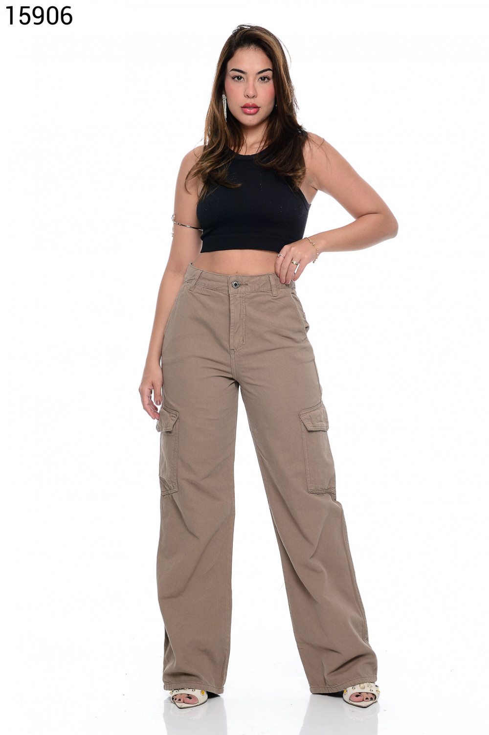 Ref.62287Calça Fem. Peq. Wide Leg Slim com Bolso Cargo - 15906