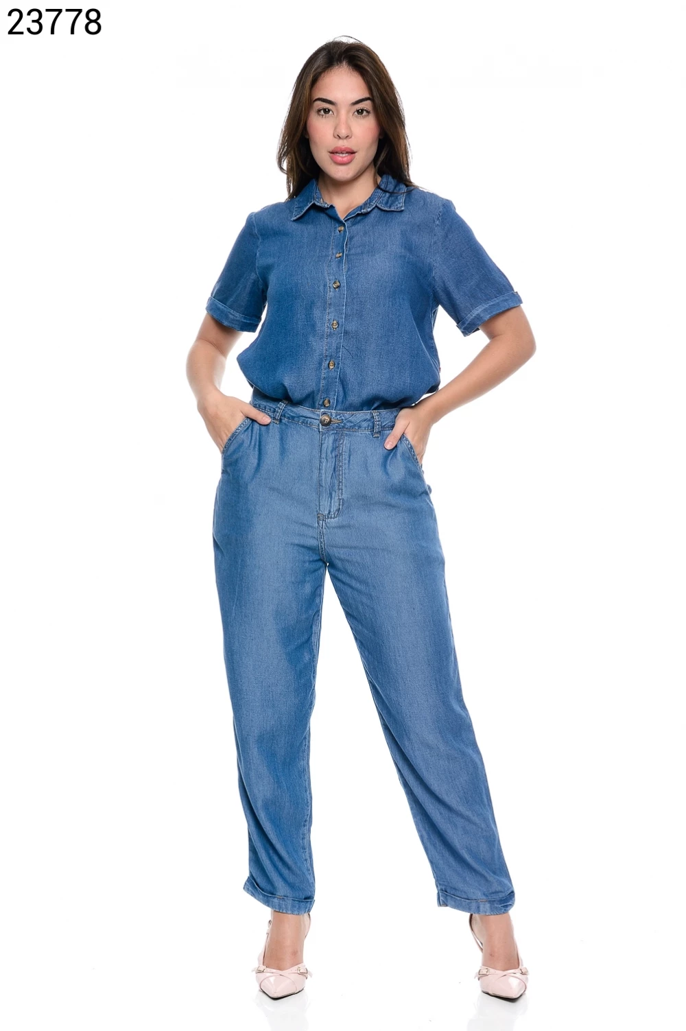 Ref.23701Calça Fem Wide Leg Slim Regular Tradicional