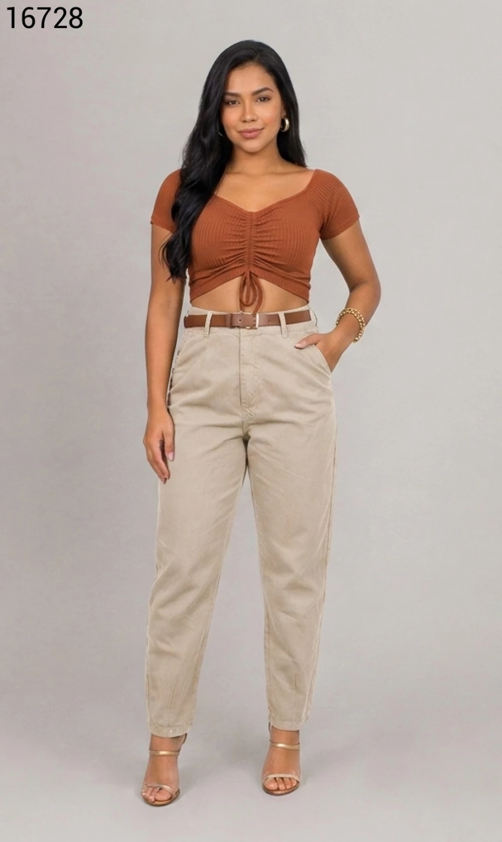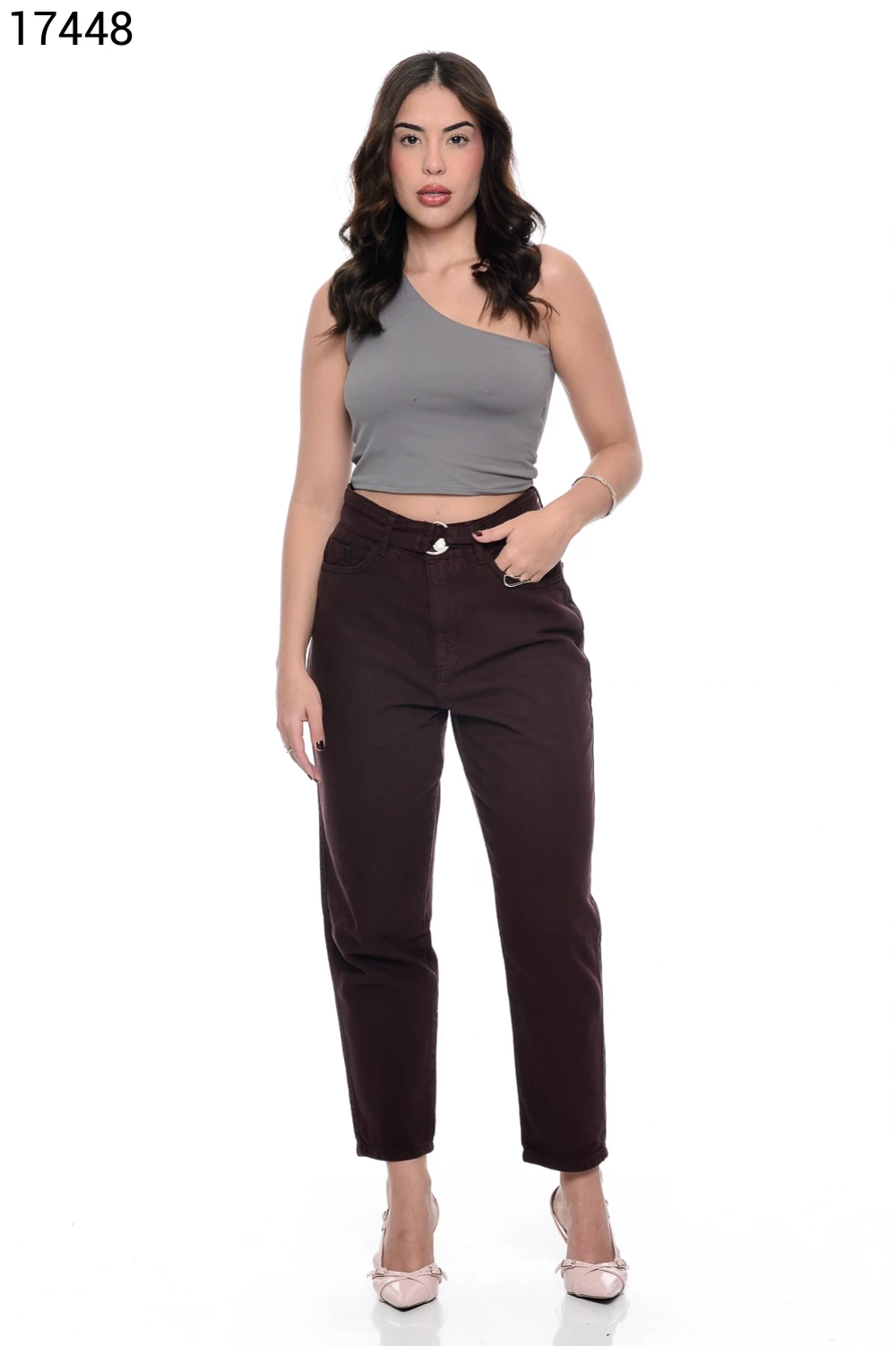 Ref.16728Calça Feminina Mom Cinco Bolsos e Cinto de Couro - 16420